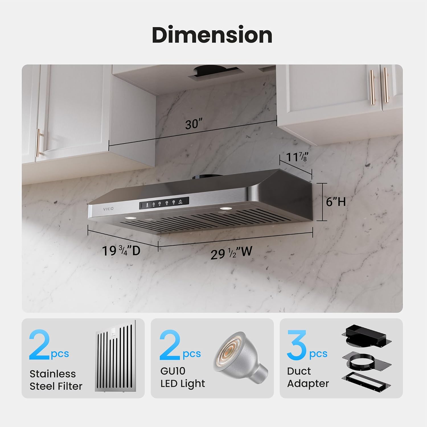[Stainless Steel + Durable + Fingerprint-Resistant] This under cabinet stove hood is built with commercial-grade stainless steel and widened filters for long-lasting durability and efficient grease capture. Ideal for busy households it is smudge-proof and fingerprint-resistant for easy cleaning extending its service life to 10+ years.
