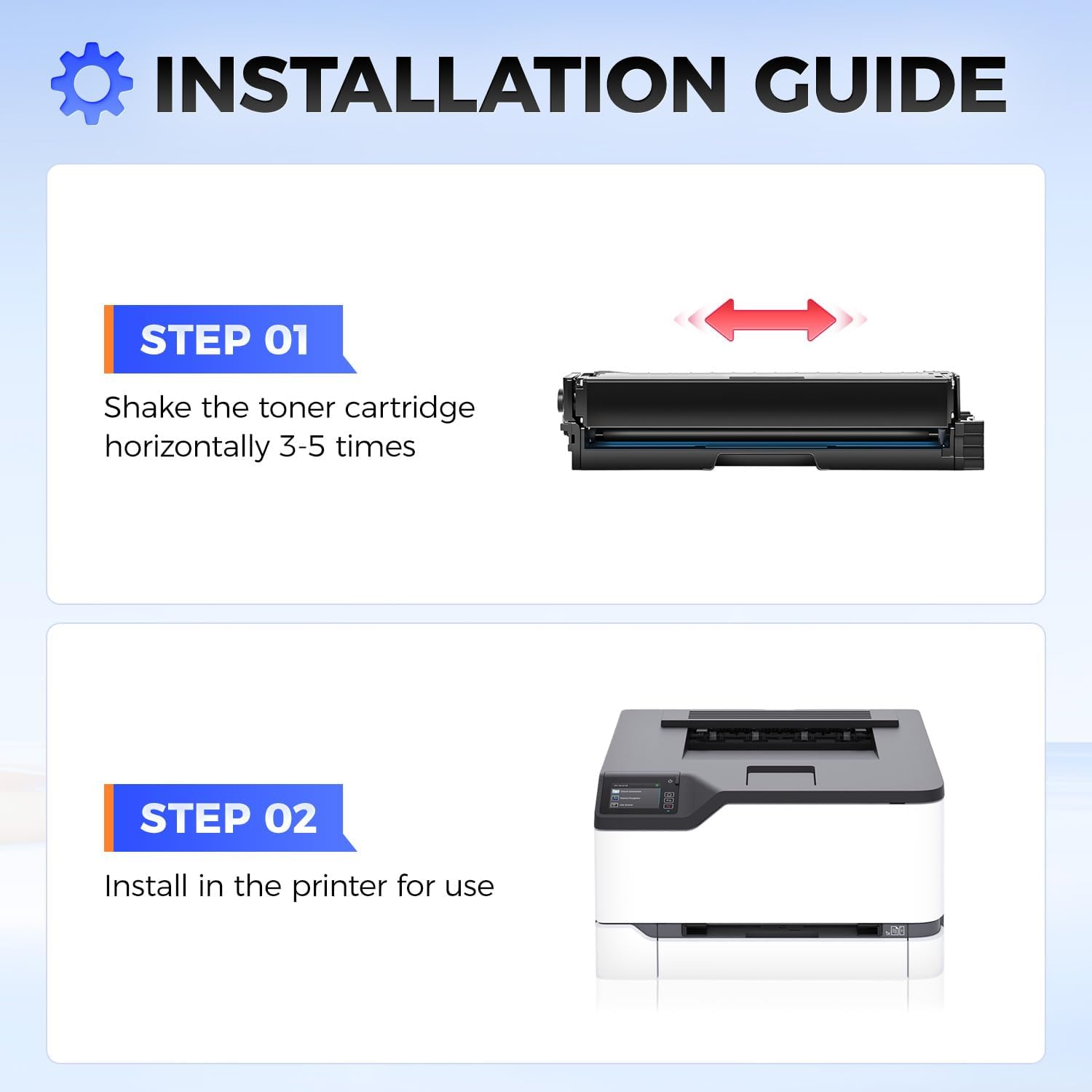 The latest chip version: the toner cartridge is equipped with the latest upgraded version of the chip ensuring perfect compatibility with each toner cartridge and quick recognition of the printer allowing you to enjoy efficient and worry-free printing. Our toner cartridge have passed ISO9001 certification. High-quality toner cartridge meet the demands of high print volumes. Fine toner ensures clear and stain-free printing results and extends the service life of the printer. The printing effect is stable and reliable. You can install and replace it directly without manual adjustment.