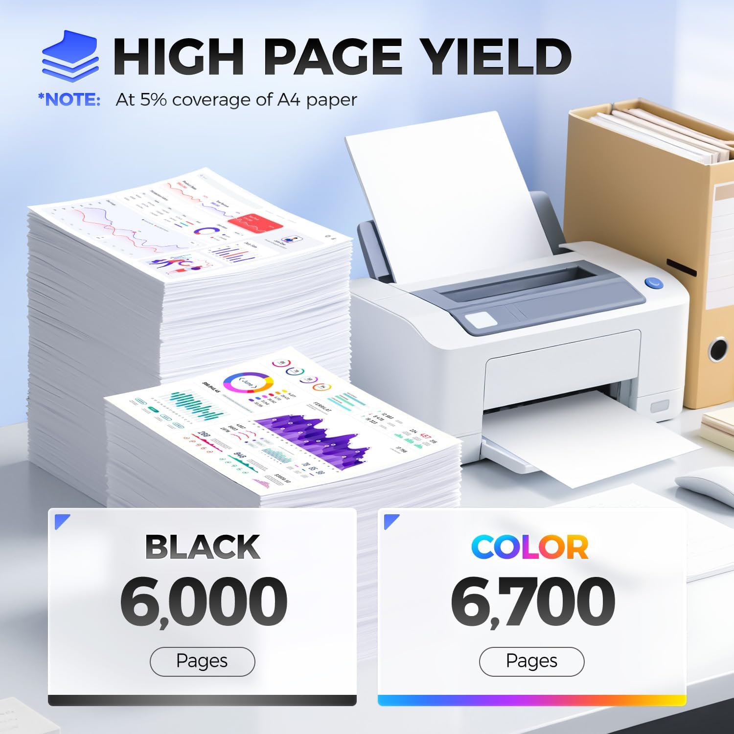 High Page Yield: Up to 6 000 pages per 20N1XK0 black Toner Cartridge up to 6 700 pages per 20N1XC0 20N1XY0 20N1XM0 color Toner Cartridge (at 5% coverage of A4 Paper) High Yield Version 20N1XK0 Toner Cartridge.