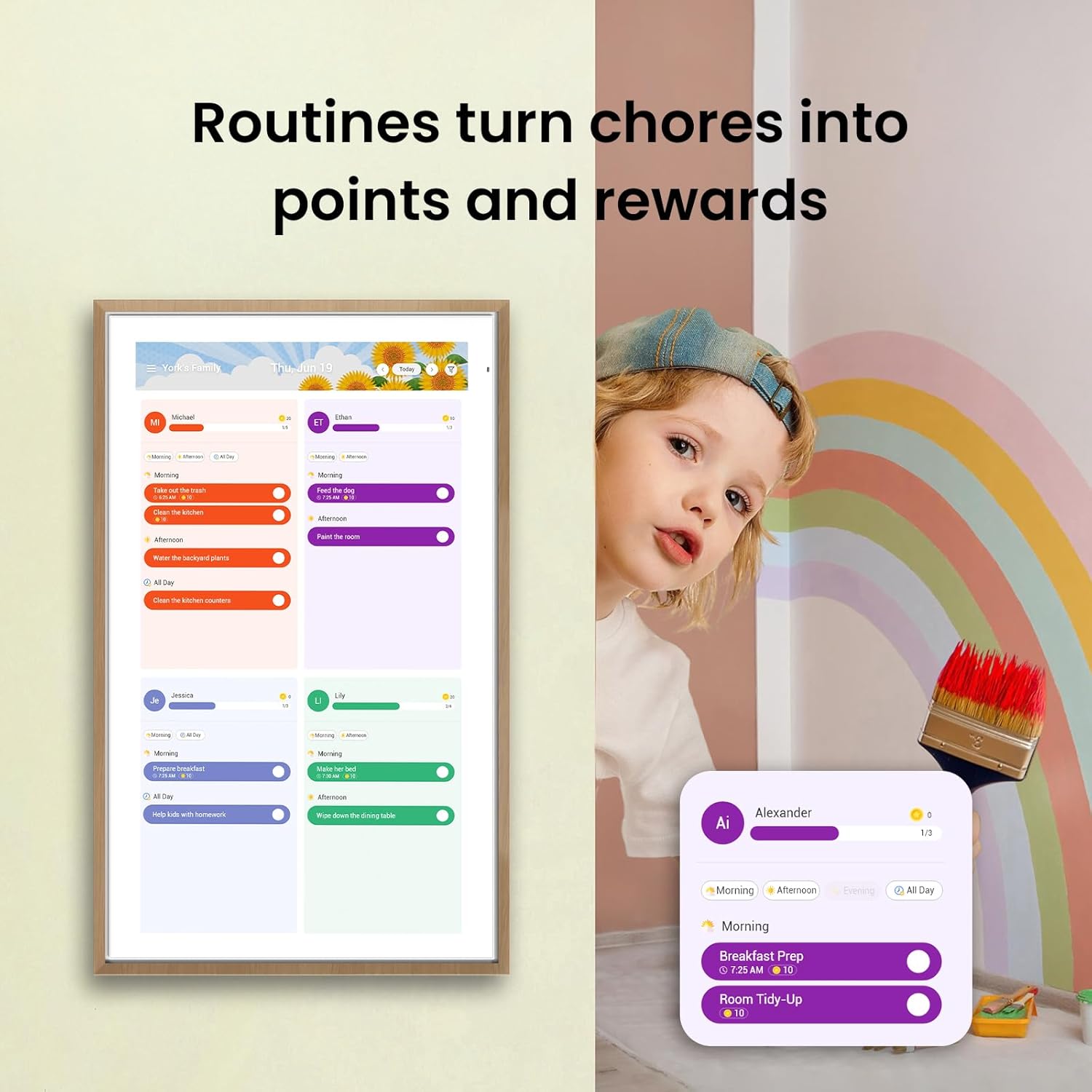 Reward-Based Chore Chart Routine & Meal Planner Turn chores into fun while keeping the whole family organized. This electronic calendar lets kids earn rewards for completing daily tasks and helps build healthy routines. Create color-coded to-do lists for groceries shopping wish lists and plan weekly meals to stay on top of family dining all in one place via the App (Currently available only in the U.S. Canada and the U.K.)