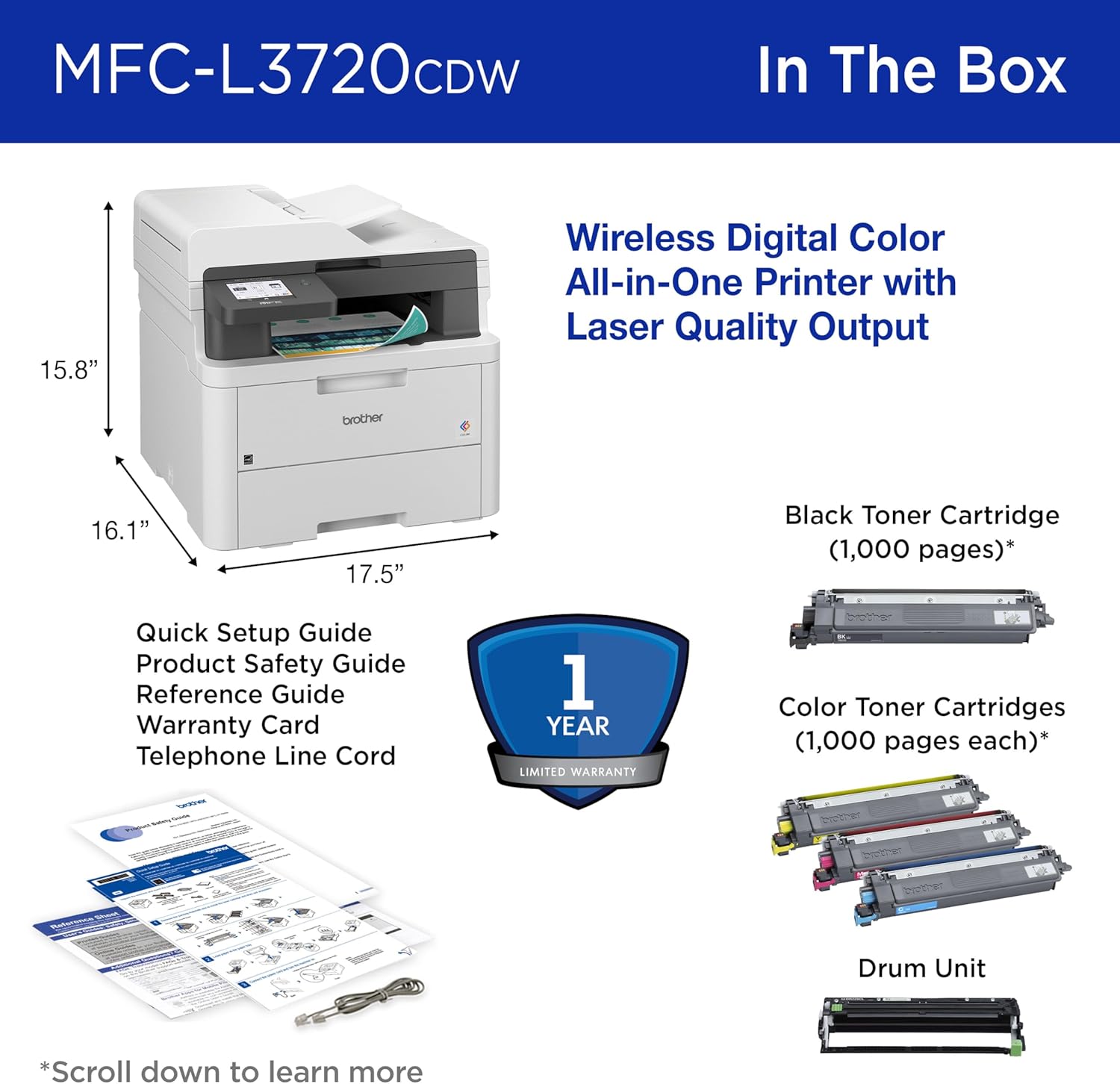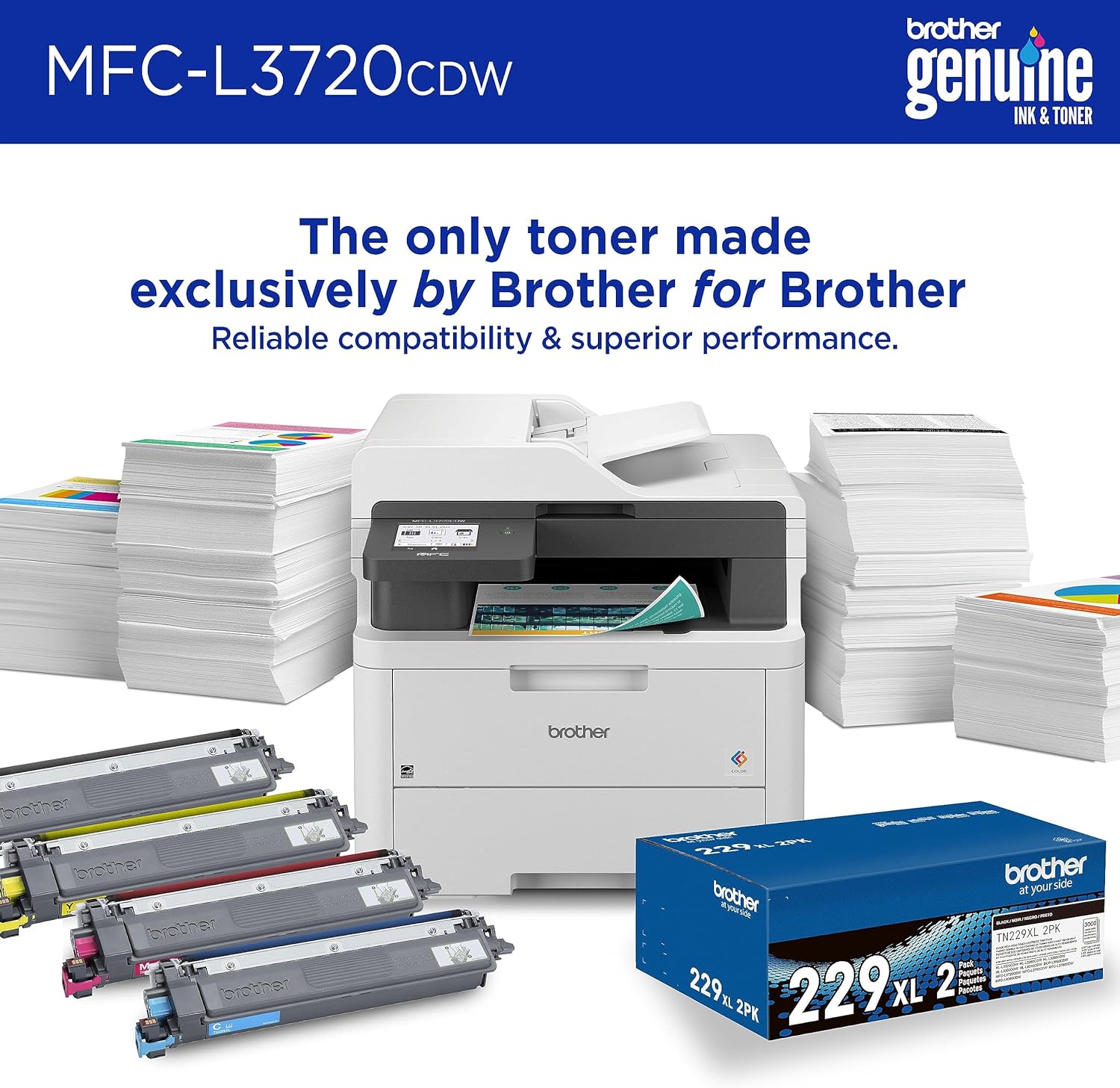 • MFC-L3720CDW Wireless Color Laser Printer with Scanner Copier and Fax | Auto Duplex and 250-Sheet Capacity | Includes Refresh Subscription Trial(1). Amazon Dash Replenishment Ready
