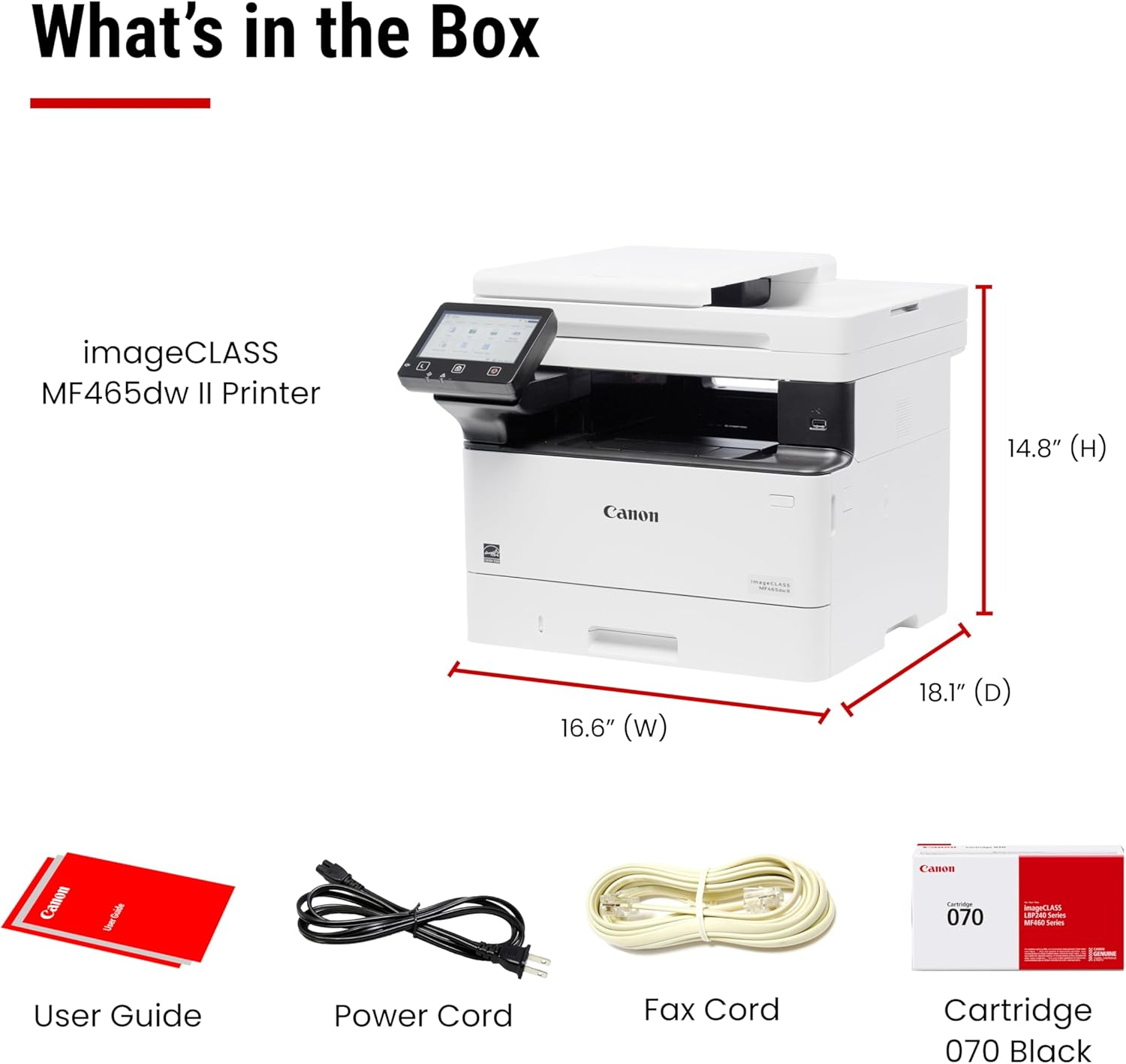 High-capacity Toner: Uses Genuine Toner 070 / 070 high-capacity for high-quality output you can be proud of and high page yields that keeps up with your printing needs and help limit toner replacements.