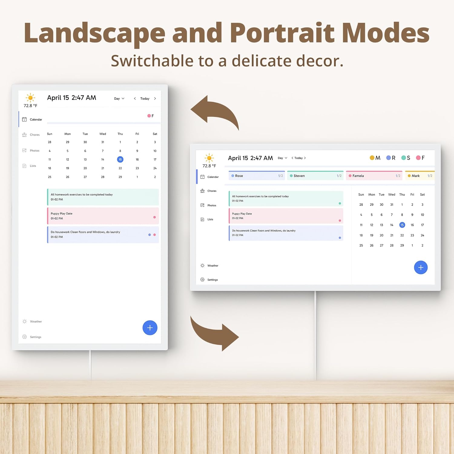 Charming Digital Picture Frame: When not in use your smart calendar transforms into a beautiful digital picture frame. Showcase treasured family photos on the crystal-clear 32" large touchscreen adding a touch of elegance to any room as modern home decor.