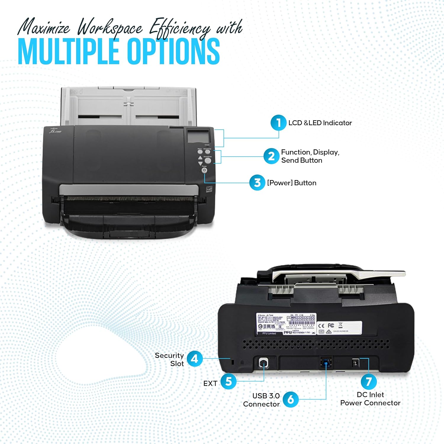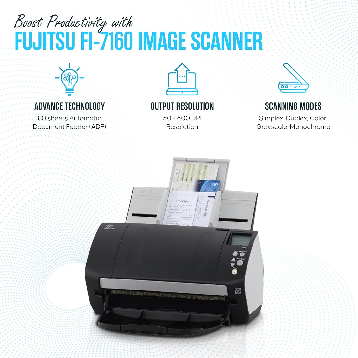 FI-7160 Fujitsu Document Scanner - Duplex - Scanners for Computers with 24V & USB 3.0 Cable 8.5 X 14 in 600 DPI 60 PPM (Mono/Color) ADF 4000 Scans Per Day (Renewed)