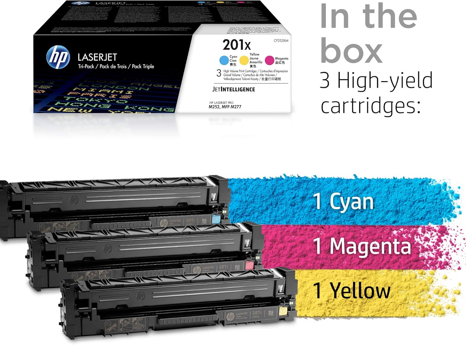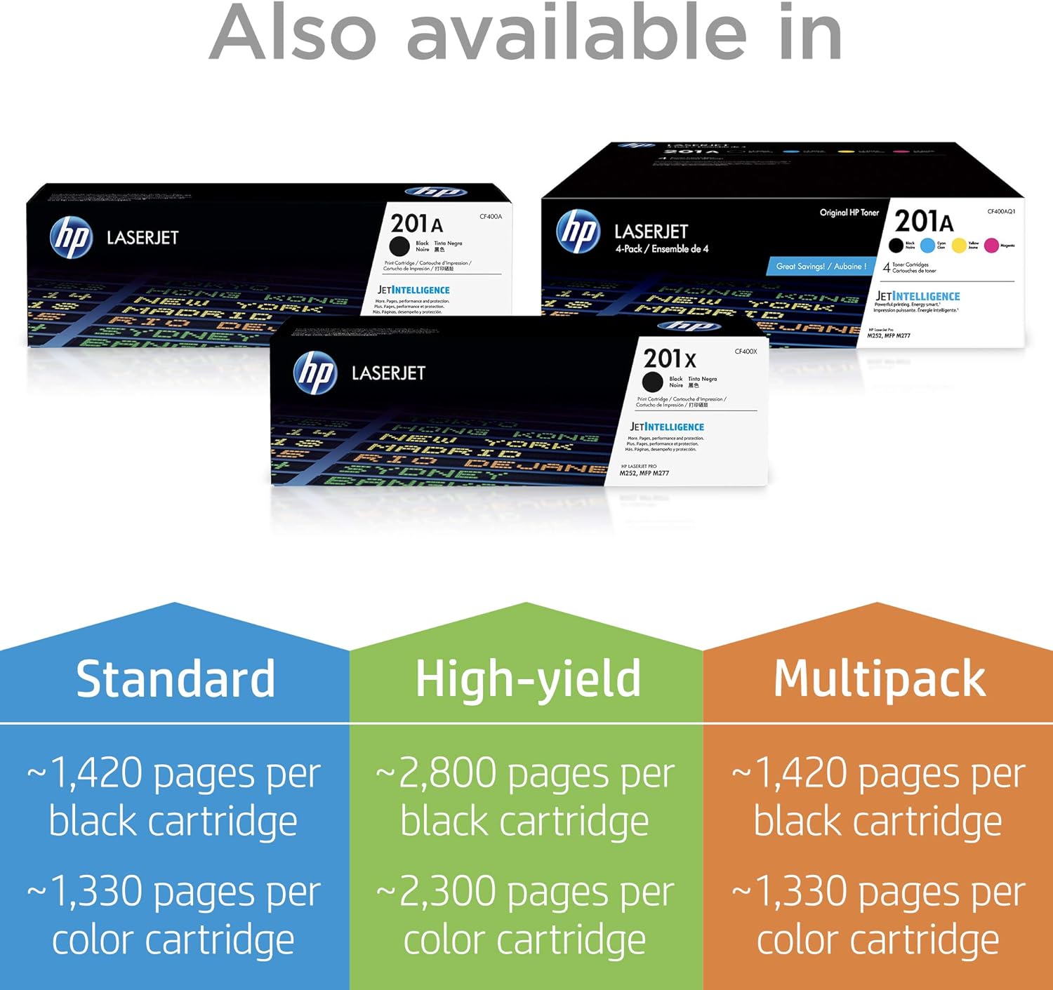 Whats in the box: 201X high yield toner cartridges (1 Black 1 Cyan 1 Magenta 1 Yellow)
