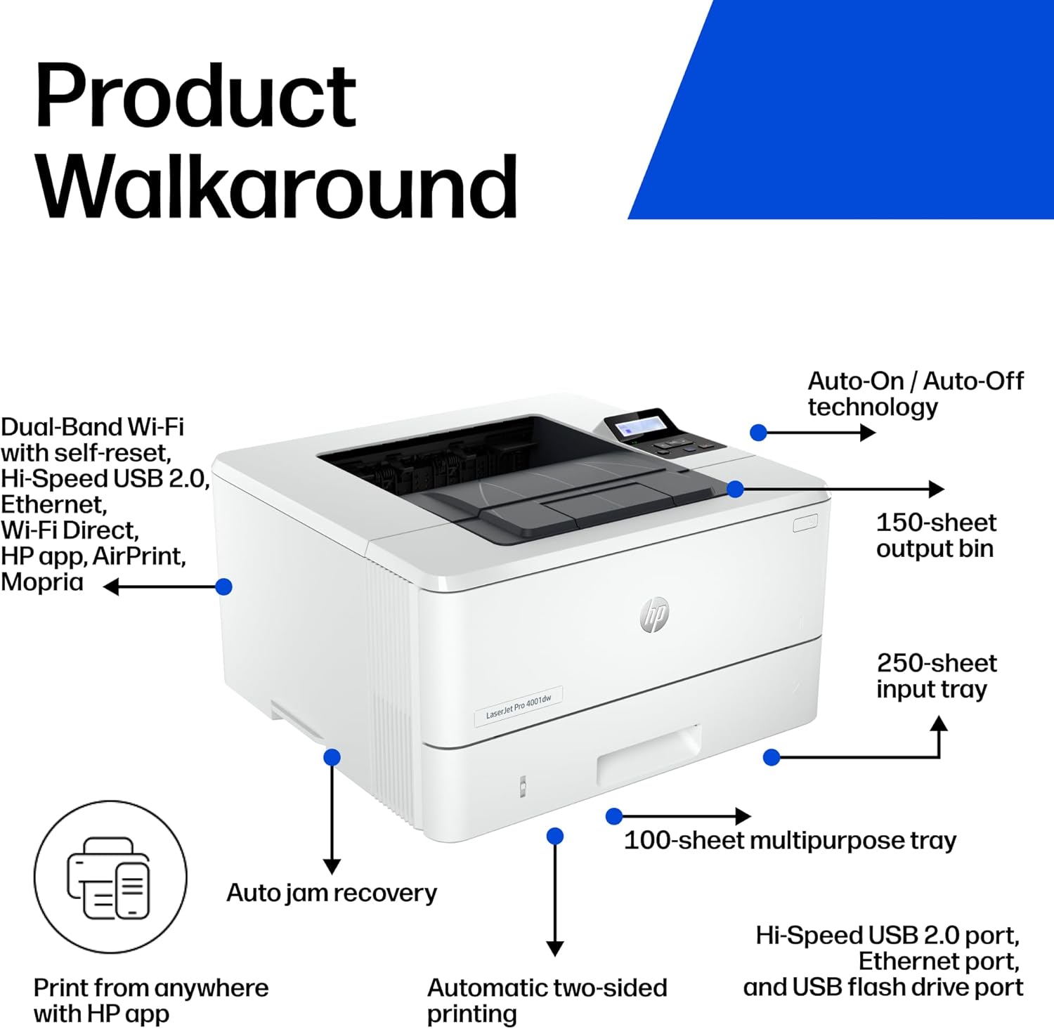 5. PRINT FROM ANY DEVICE Wireless printing from any mobile device PC or tablet. Ethernet and Bluetooth included. Works with Microsoft Mac AirPrint Android Chromebook and more.