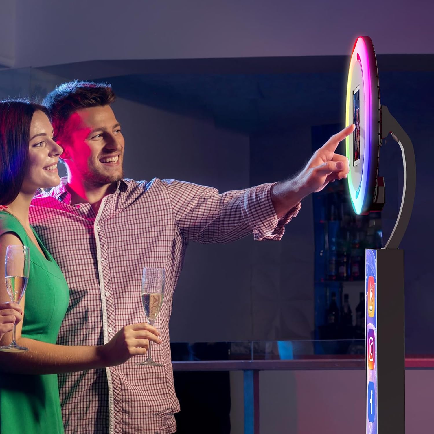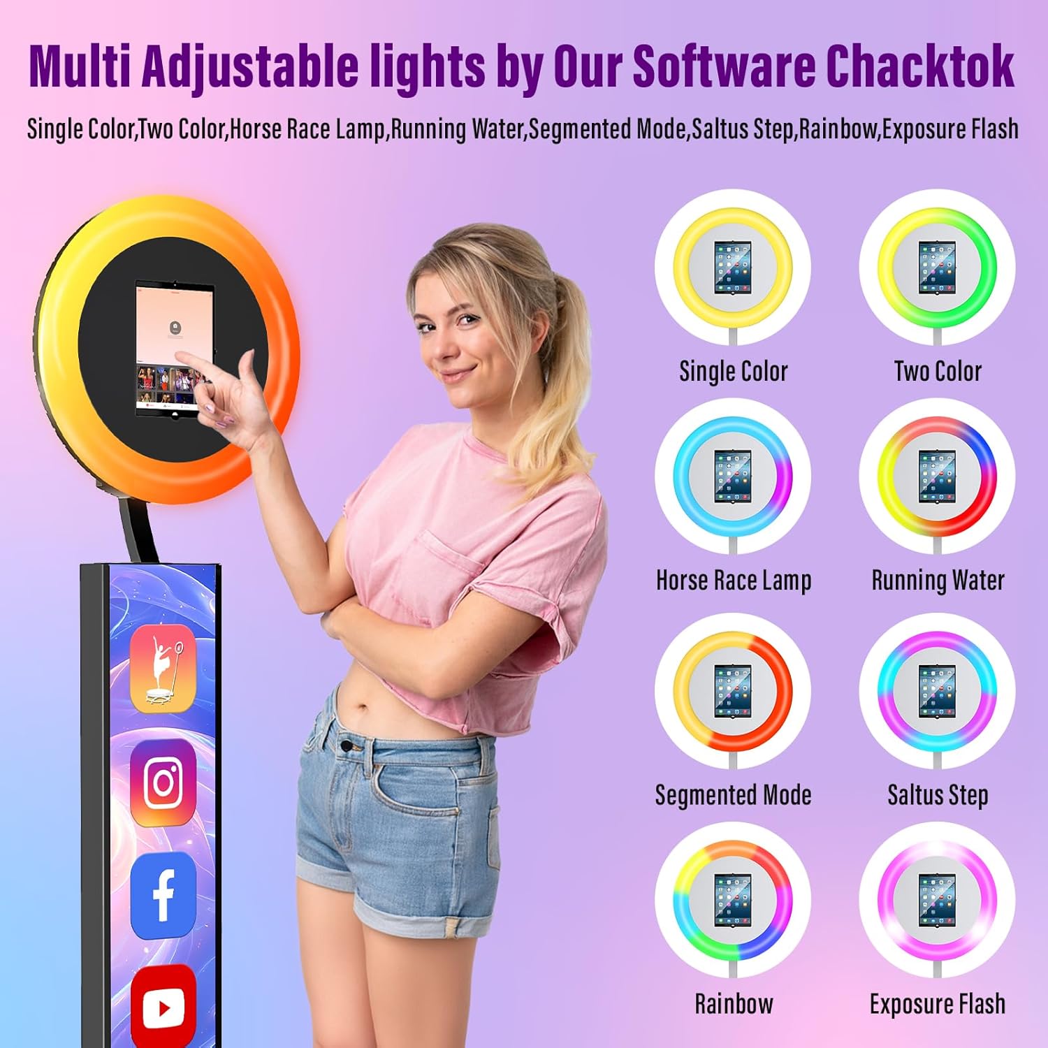 Exclusive Advantage Software Chacktok:At present the number of users using Chacktok software has reached millions chacktok software not only control the brightness saturation and color temperature of RGB Light Ring but also Create activities standardize shooting processes and preset effects and greatly improve shooting efficiency.Notes:It takes about a week from the time of ordering to receiving ipad photo booth