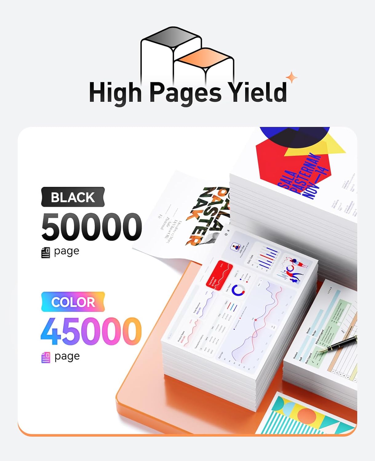 Yield & Version: W9170MC Black Toner Cartridge can print 50 000 pages and each W9171MC W9172MC W9173MC color Toner Cartridge can print 45 000 pages. (A4 5% Coverage) High Yield Version W9170MC toner cartridges.