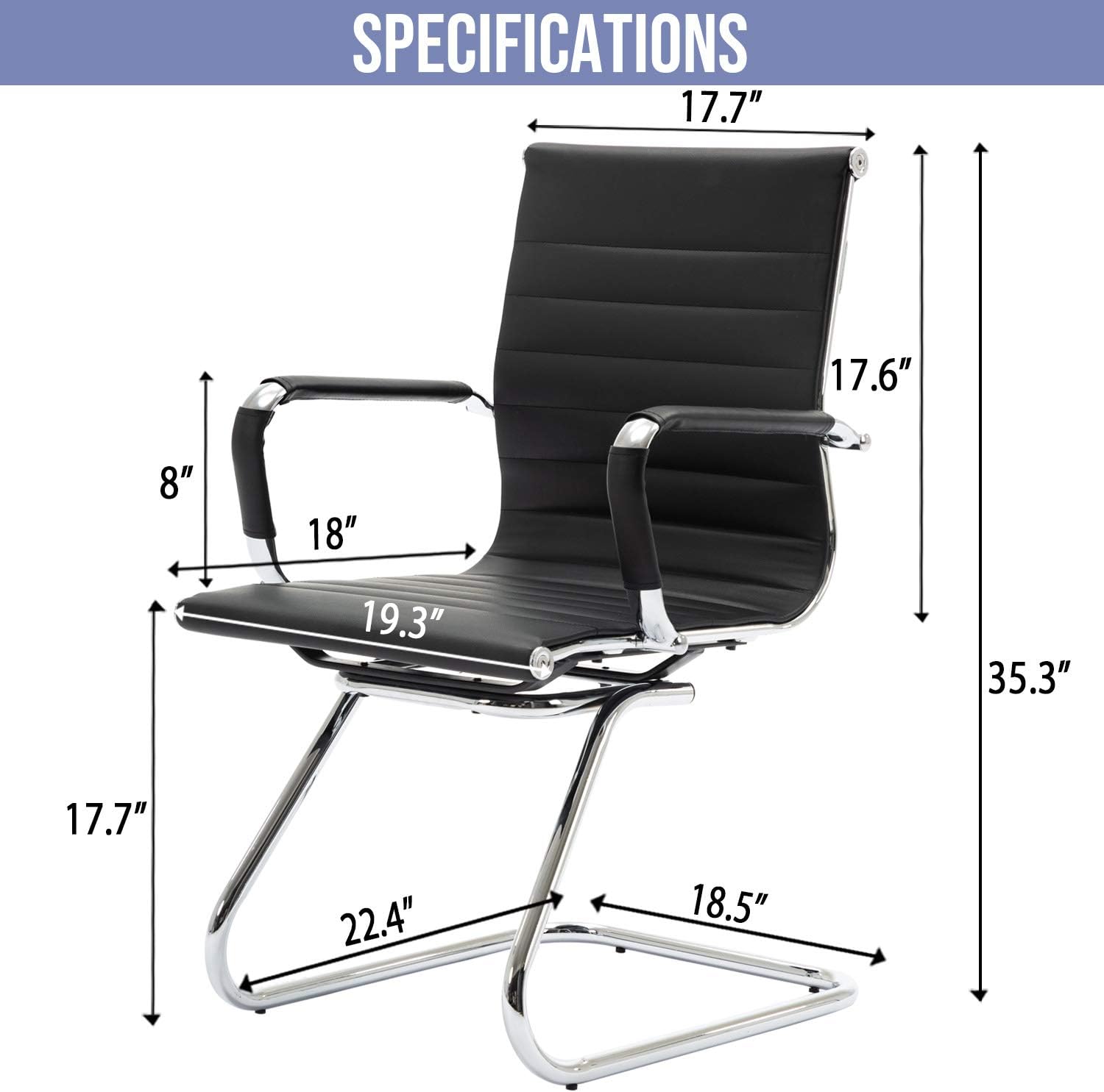 Easy to CleanTotal height: 35.5"; Seat Height To Floor: 17.7". Seat Depth x Seat Width: 18" x 19.3". The faux leather cushion and the chrome-plated metal frame are designed for easy cleaning. Simply wiping gently with a damp cloth is sufficient to remove dirt and stains.