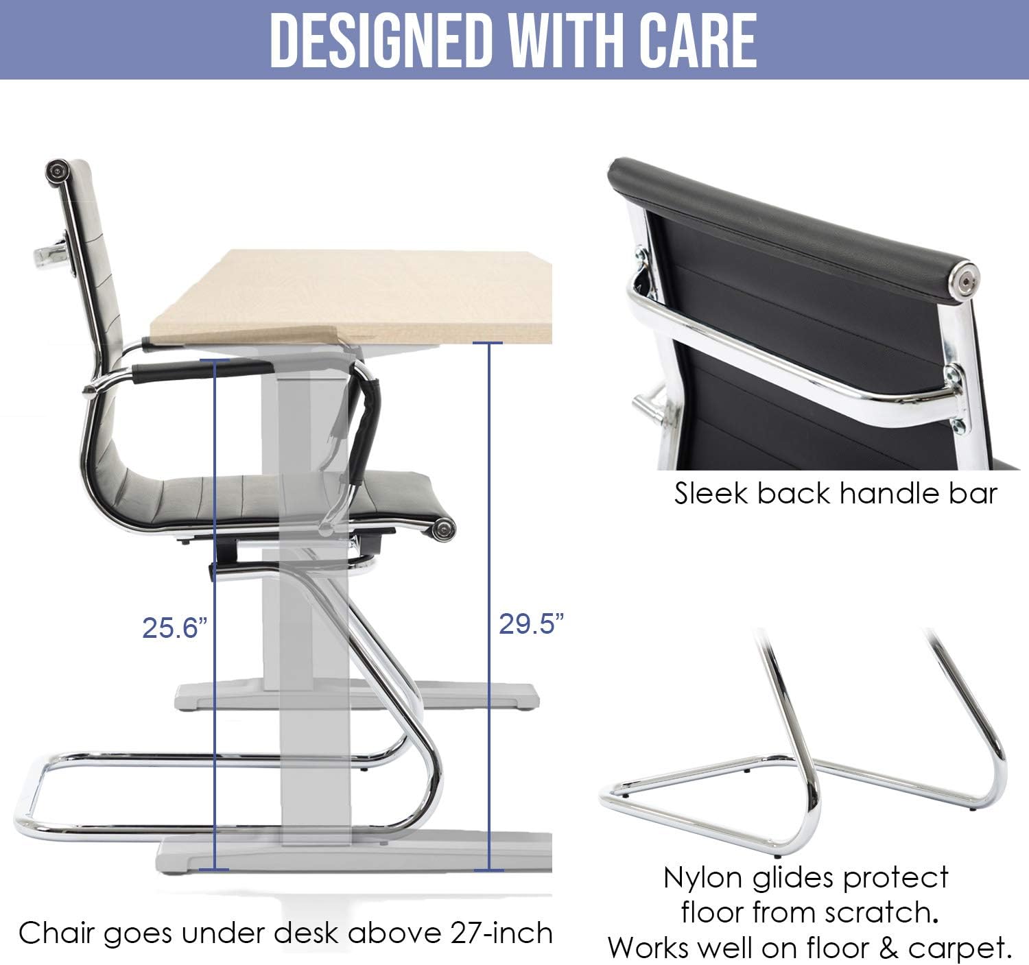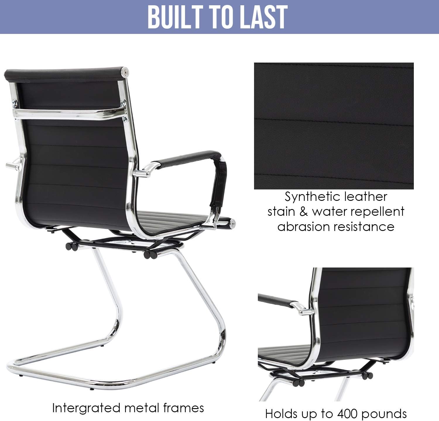 Discover the perfect balance of style and practicality with our innovative chair design. The sleek sled base provides exceptional stability while adding a modern touch. Built to last these chairs boast a robust 400 lbs weight capacity. Luxurious PU leather upholstery offers both comfort and easy maintenance. The ergonomic curved back cradles your spine for optimal support during long work hours.