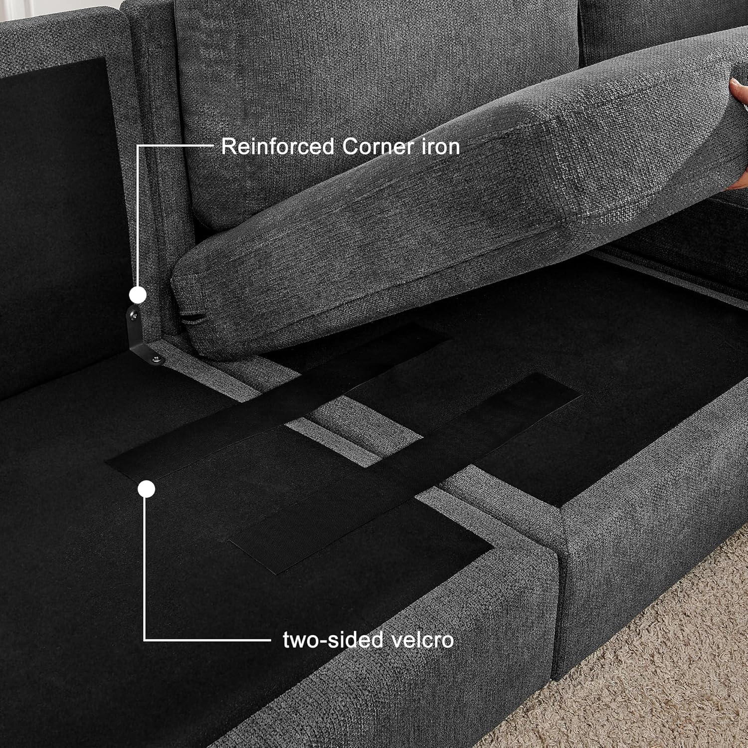 Durablity& Sturdy: Cloud sectional couch is made up with quality wood frame + high density foam + breathable chenille fabrics with stripe which keep the essential of its beauty While keeping the seat comfortable and firm .