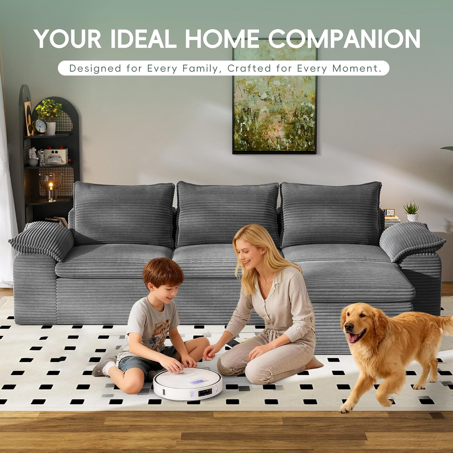Plush, Pet-Friendly Corduroy FabricMade from high-quality, soft plush corduroy. This refined fabric is not only incredibly soft to the touch but also durable and resistant to pet hair, making it ideal for households with pets. Corduroy fabric has a tight structure and is highly wear-resistant and scratch-resistant