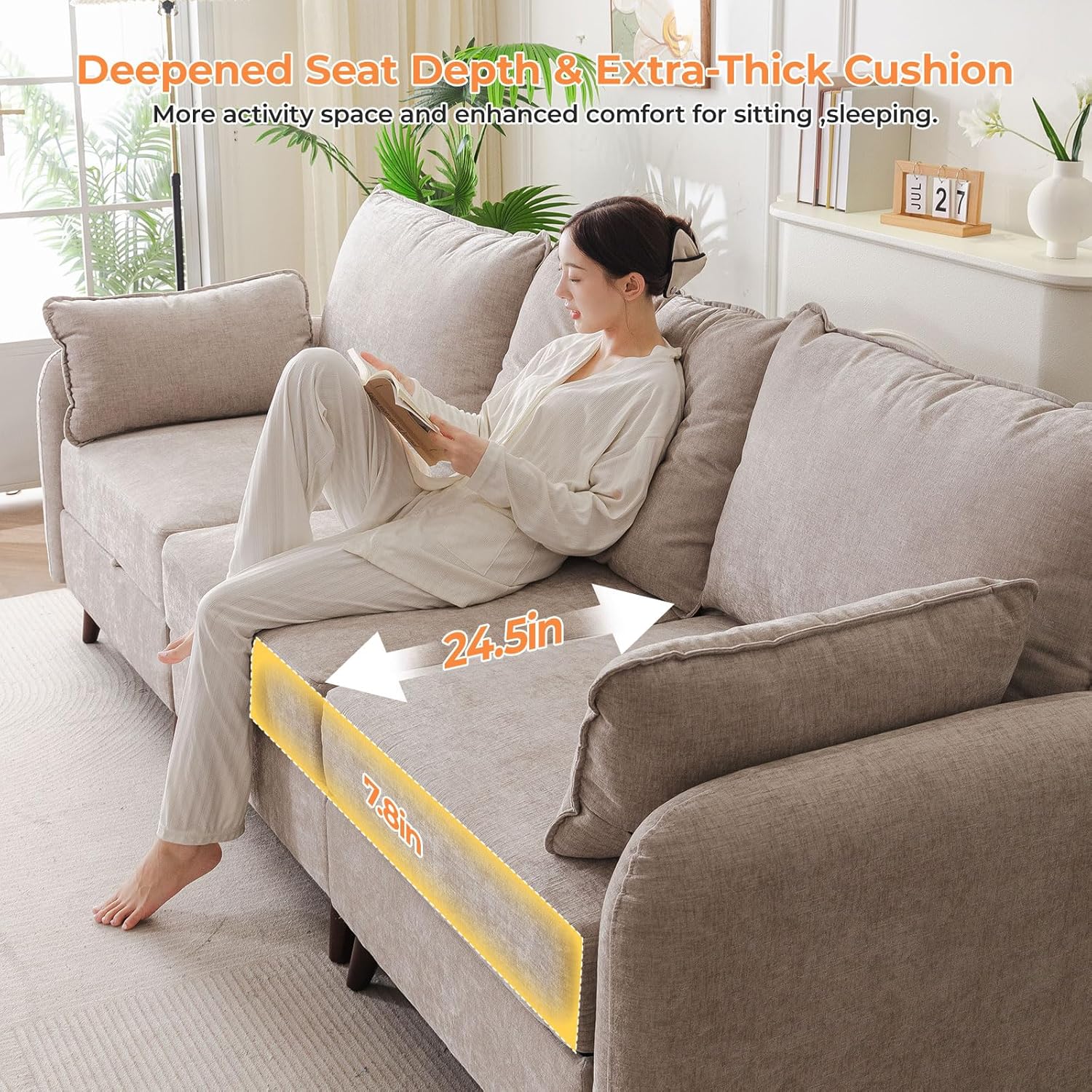 DURABLE CONSTRUCTION & LONG-LASTING SUPPORT: Built to last for years, this sofa features a solid wood frame, reinforced with a robust S-spring system for exceptional weight capacity and sag-resistant support. The 7.8-inch thick cushion is filled with high-resilience 25D foam, ensuring it maintains its shape and comfort without deformation for over 2 years of regular use.