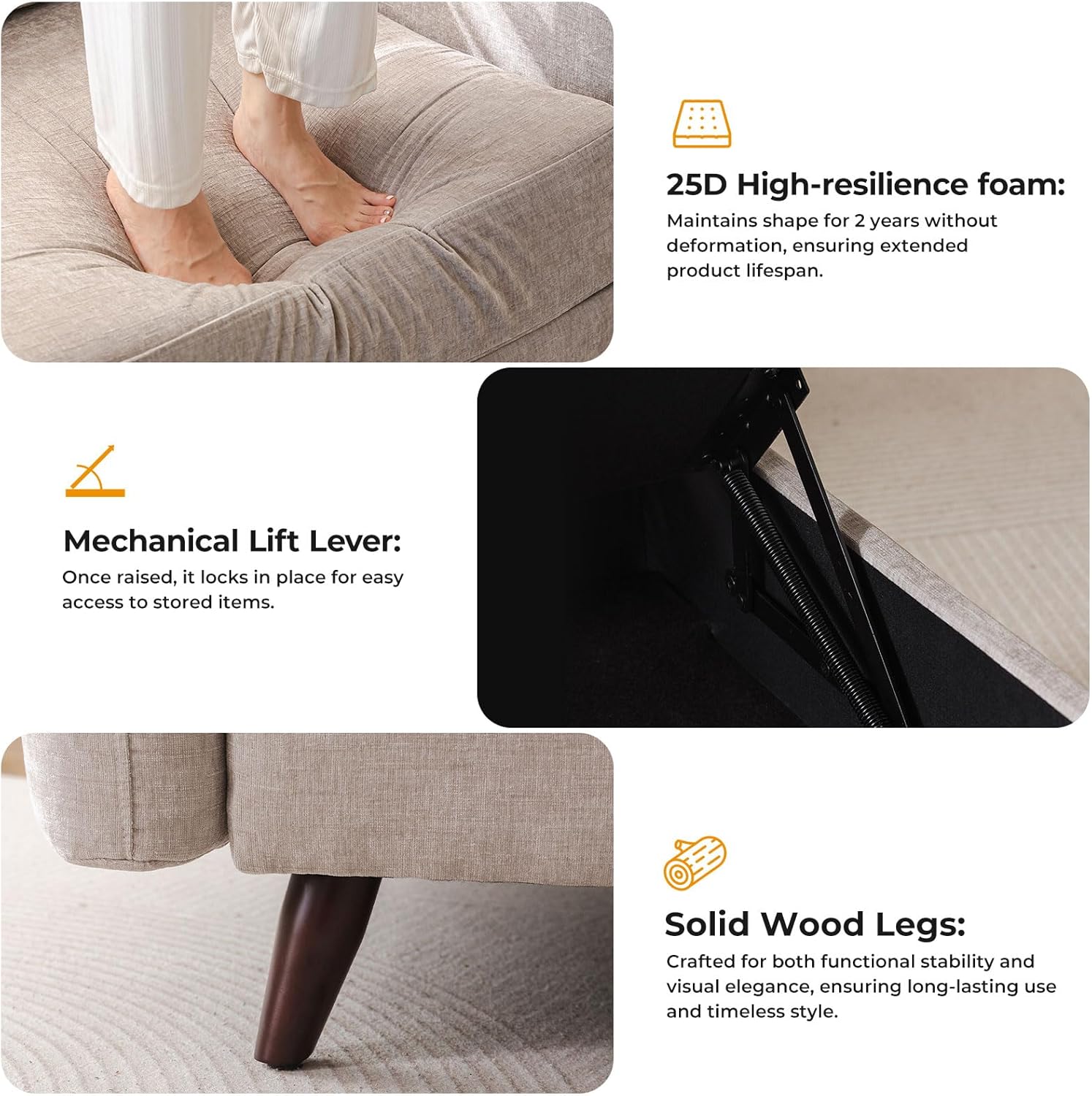 SMART UNDER-SEAT STORAGE & EASY-LIFT MECHANISM: Maximize your living space with hidden, large-capacity storage under every seat (31"x31"x7"). It's perfect for organizing blankets, kids' toys, seasonal decorations, or daily essentials. The built-in gas lift mechanism holds the seat securely open for hands-free, convenient access and safe closing.
