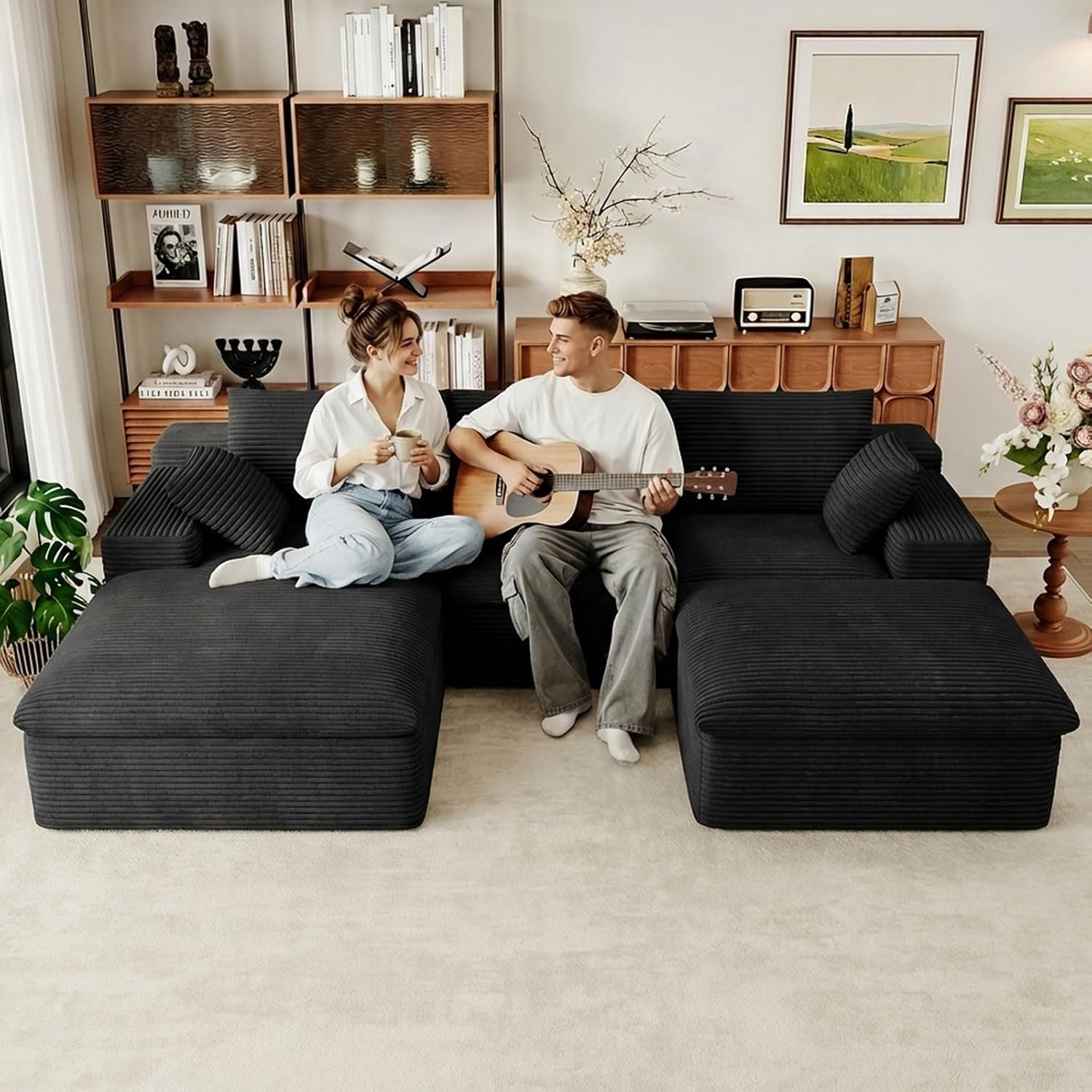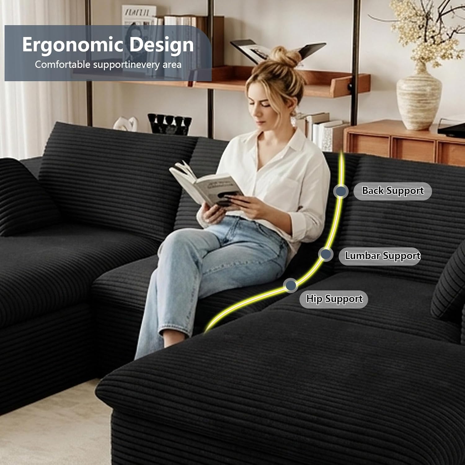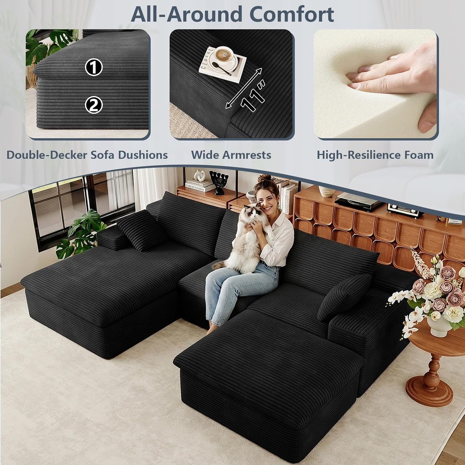 LUXURY CORDUROY SECTIONAL SET:This living room couch is made of luxurious corduroy fabric that is super soft and cozy. Its unique texture and plush feel provide gentle pampering throughout the season, making it a cozy and stylish accent to your living space