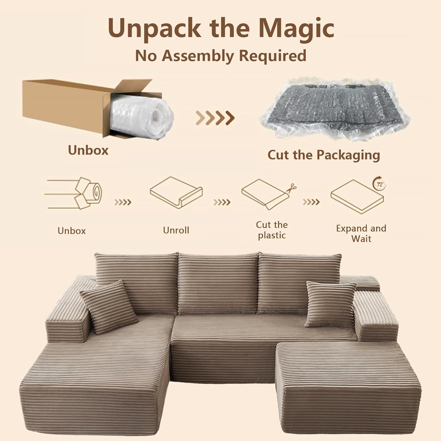 No Assembly Required: Say goodbye to complicated furniture assembly! Our boneless sofa arrives fully assembledsimply unbox, fluff up the cushions, and within 72 hours, you'll have a perfectly shaped chenille sofa ready to enjoy. No tools, no hasslejust instant comfort and style. With dimensions of 107.5W x 69.7D x 37.8H, this spacious sofa is the ideal centerpiece for your living room, offering both style and comfort without any of the typical assembly frustrations