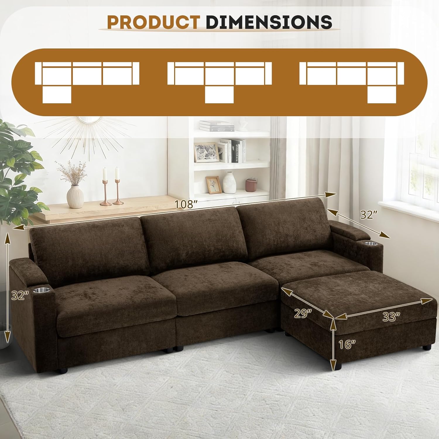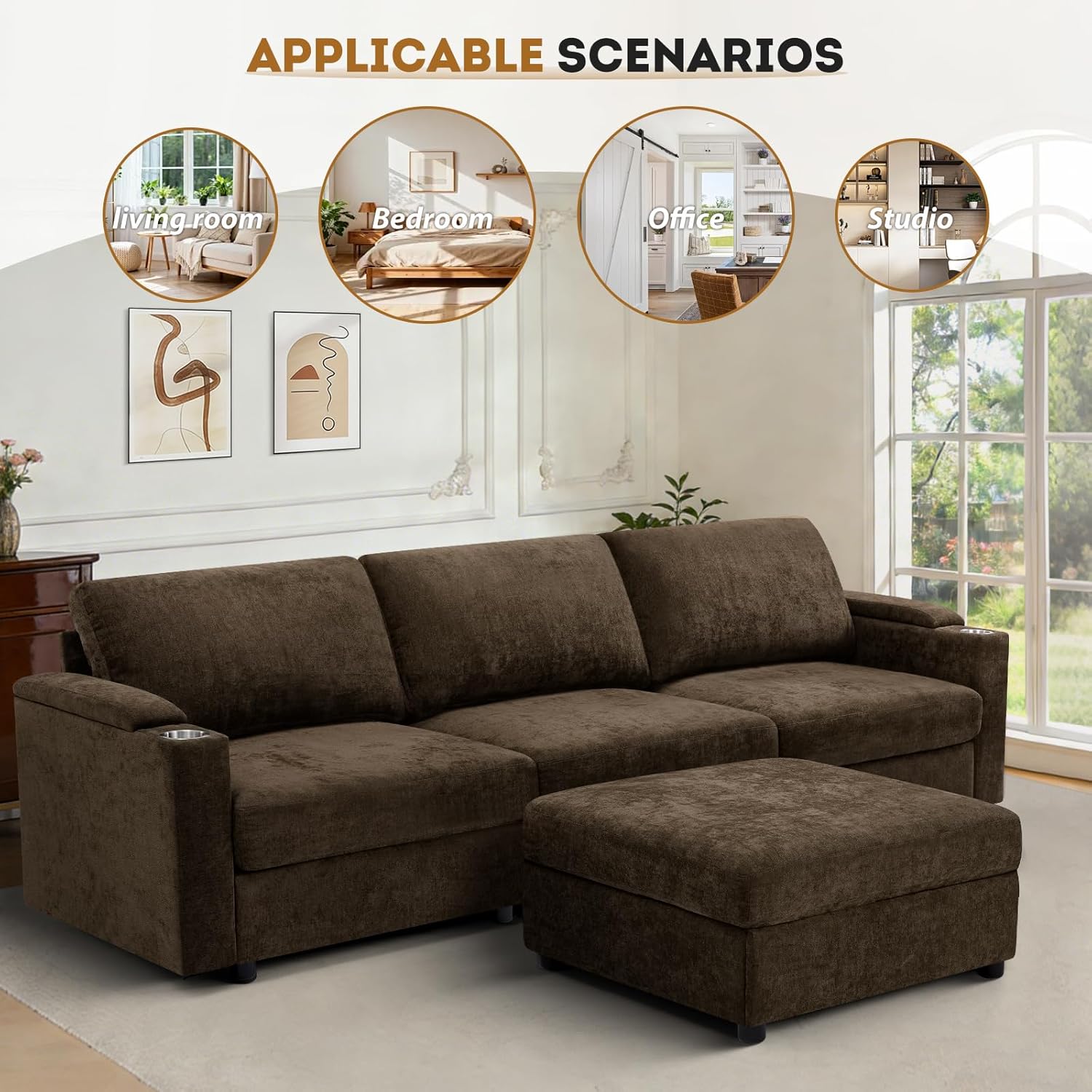 Comfortable Seat Cushions:The chenille couch with thick cushions are very cozy and soft. The seat cushions with high resilience foam can offers both comfort and durable. After a long day of work, you can lie on it to rest and relax your body