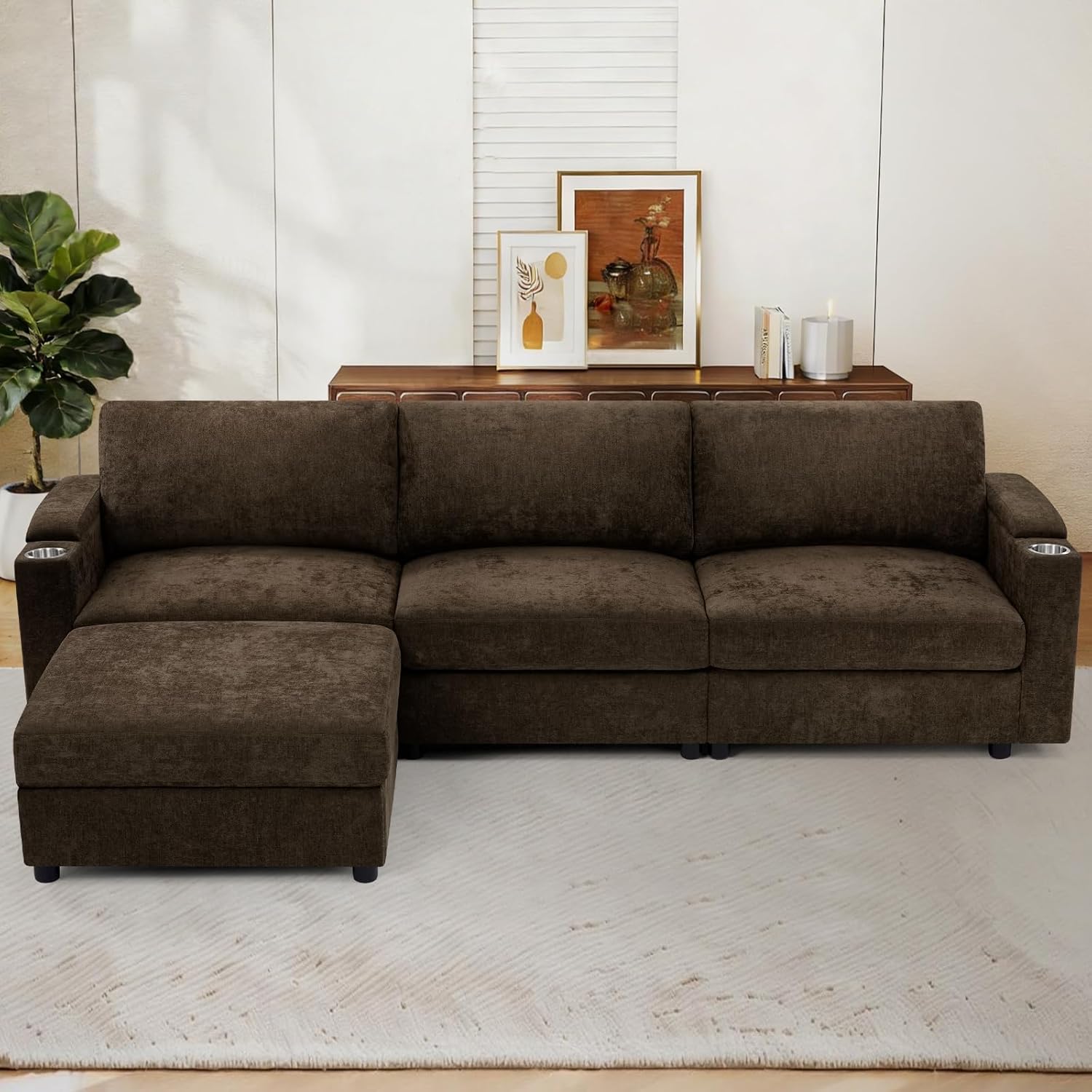 Practical Storage Armrests: This storage design is very useful and very convenient. You can put the TV remote control in the armrest storage space. When you are watching TV on the sofa, you can easily take out the unopened canned drinks from the armrest