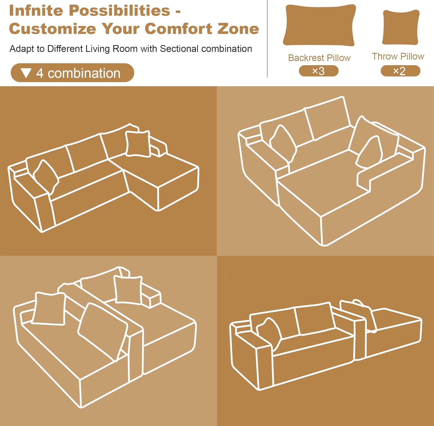 Multi-Functional CouchWhether it's a quiet evening or a family gathering, our modular sectional sofa offers the perfect balance of style and comfort. Its L-shaped design and cloud couch softness make it the ideal choice for creating a welcoming space. Perfect for any room, this sofa set invites you to make lasting memories while enjoying unparalleled comfort.