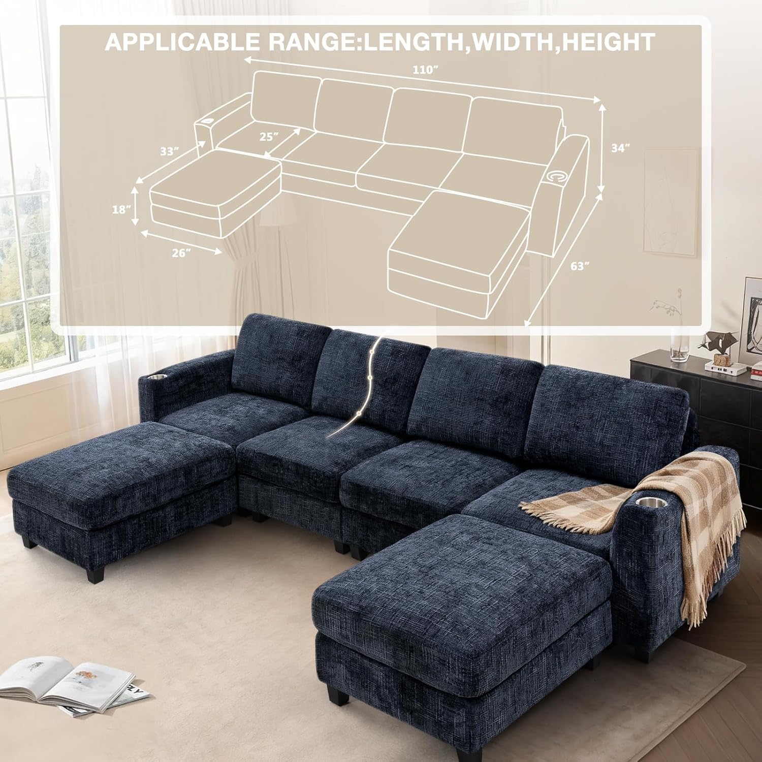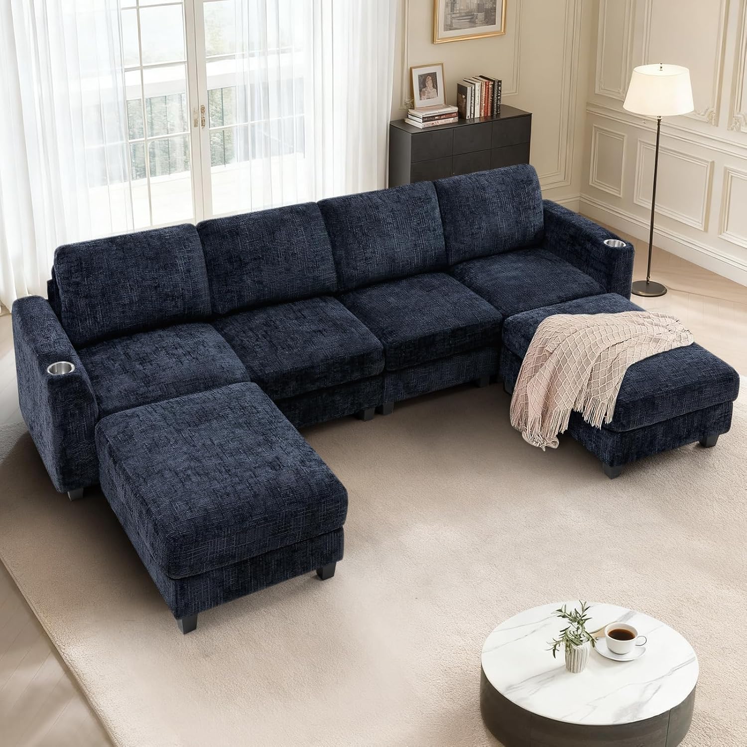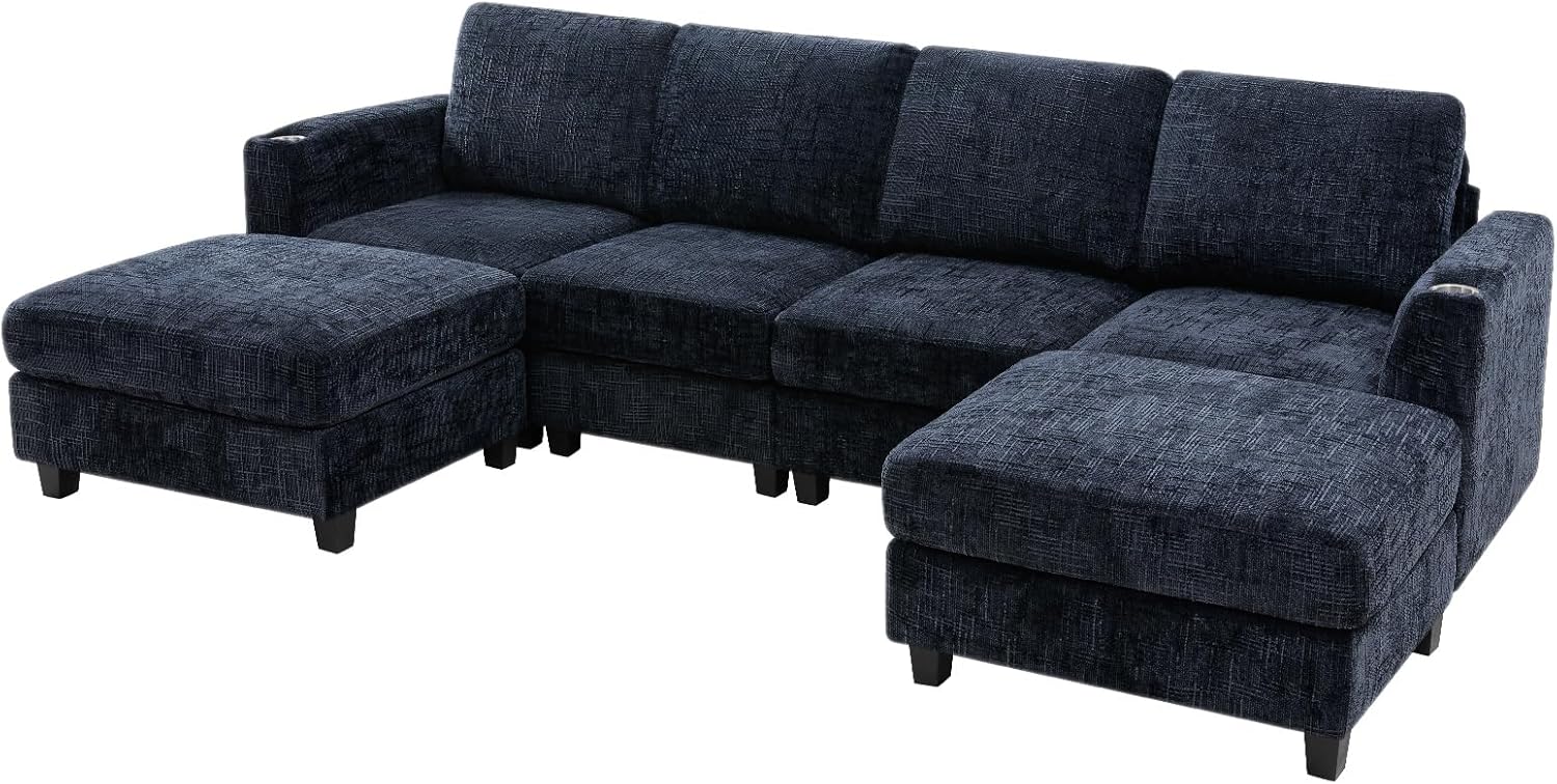 Built-in Cup Holders & Durable Chenille: The wide armrests has two cup holders, which can place your drink. The u-shape sofa is made of durable chenille. When you rest, the soft premium chenille of the modern sofa can also make your rest more comfortable