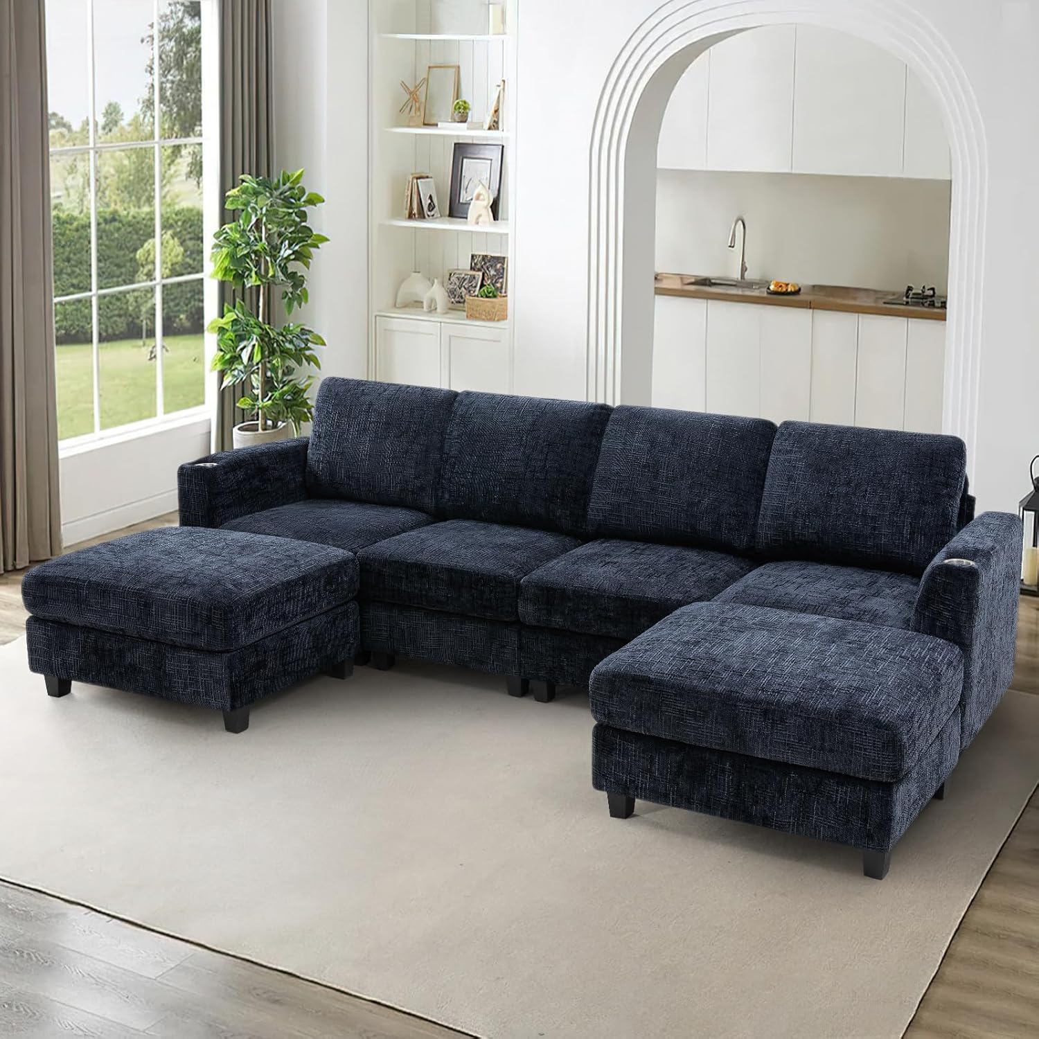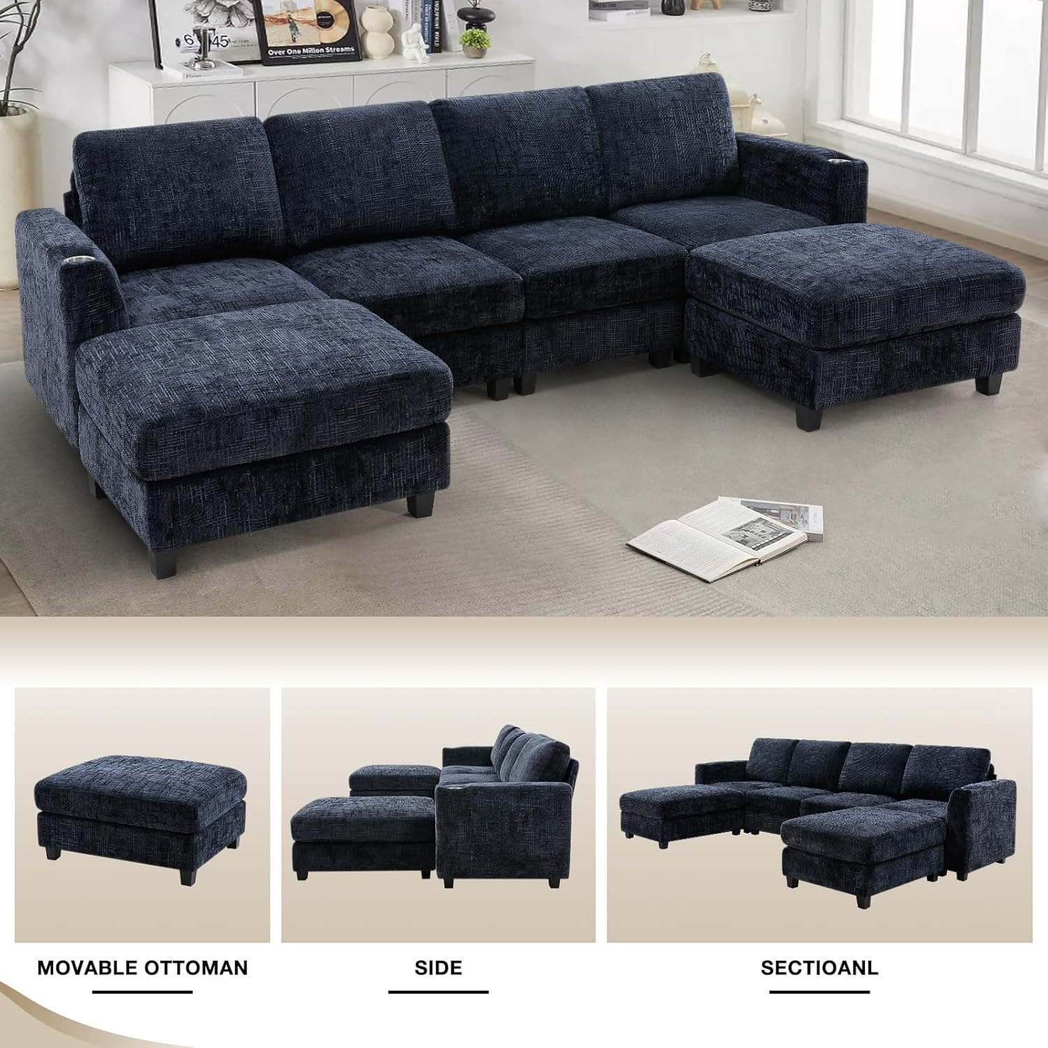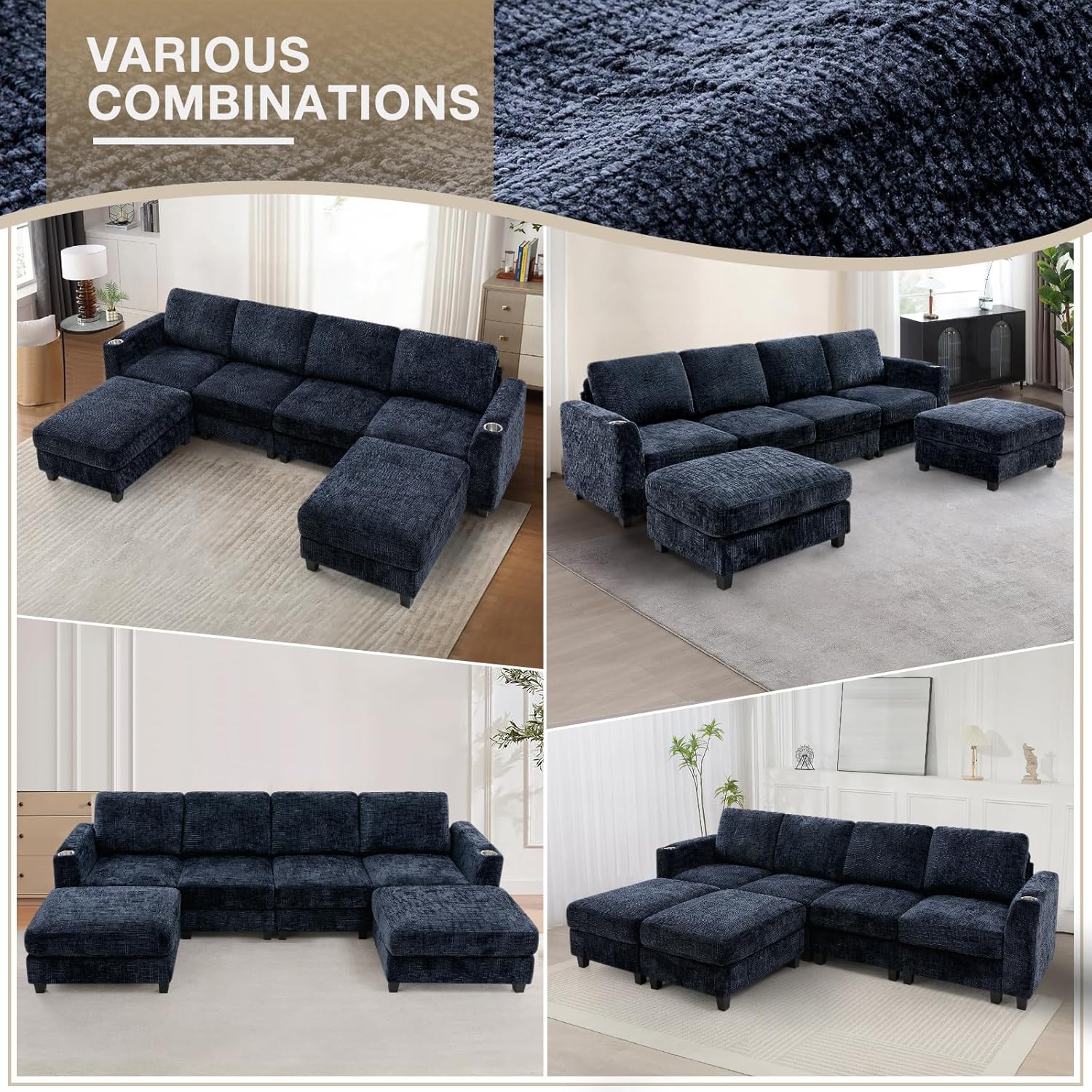 Built-in Cup Holders & Durable Chenille: The wide armrests has two cup holders, which can place your drink. The u-shape sofa is made of durable chenille. When you rest, the soft premium chenille of the modern sofa can also make your rest more comfortable