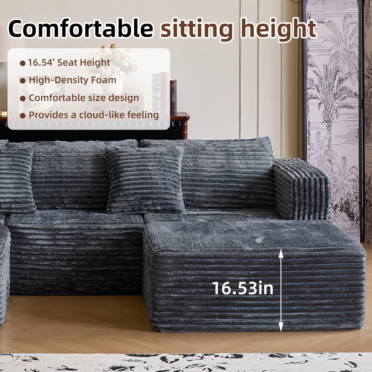 Premium High-Density Sponge: Cloud-like comfort meets lasting support! Engineered with ultra-resilient high-density foam, this shaped sofa contours to your body, ensuring a plush yet supportive feel for movie nights or lounging