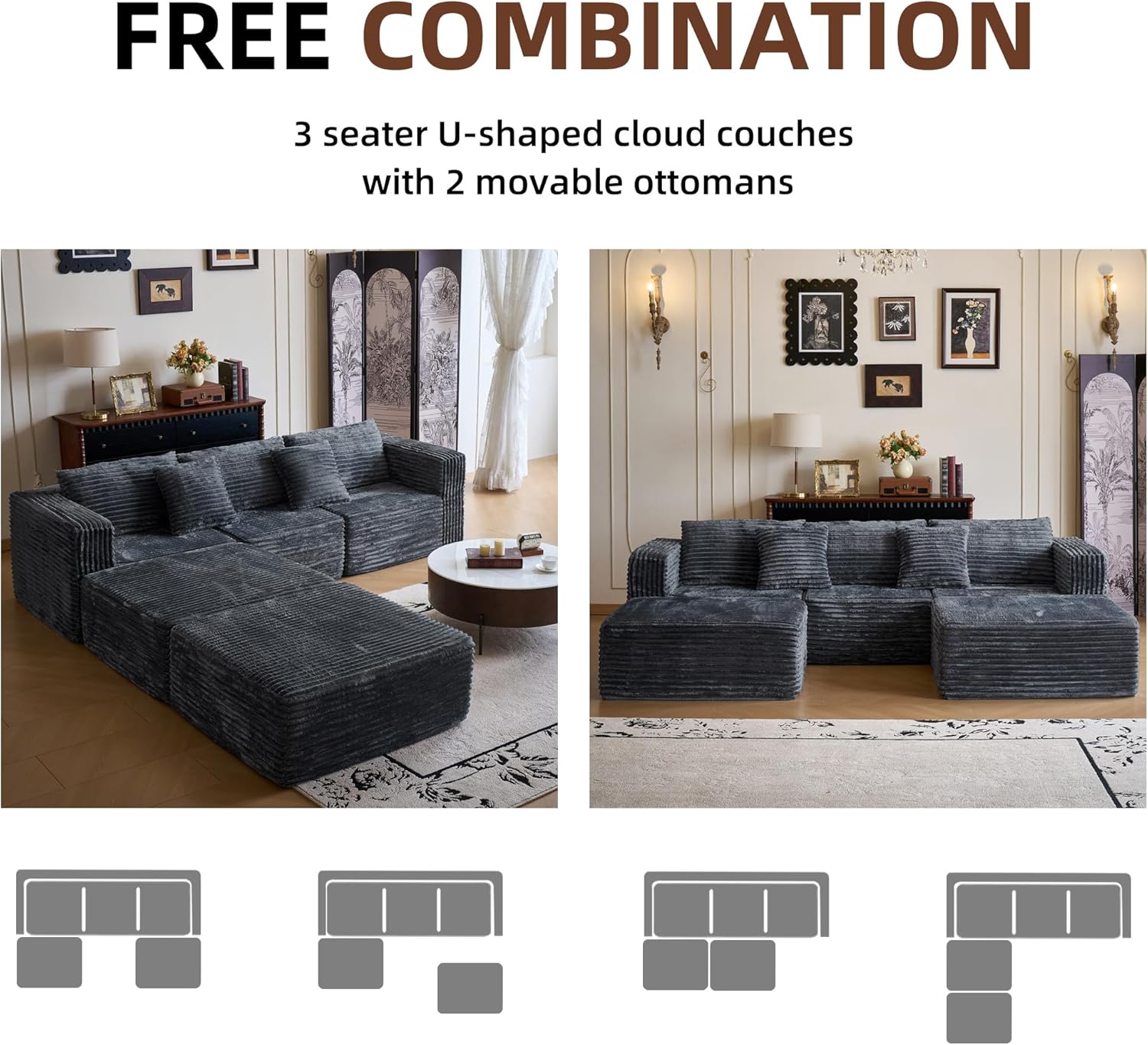 Premium High-Density Sponge: Cloud-like comfort meets lasting support! Engineered with ultra-resilient high-density foam, this shaped sofa contours to your body, ensuring a plush yet supportive feel for movie nights or lounging