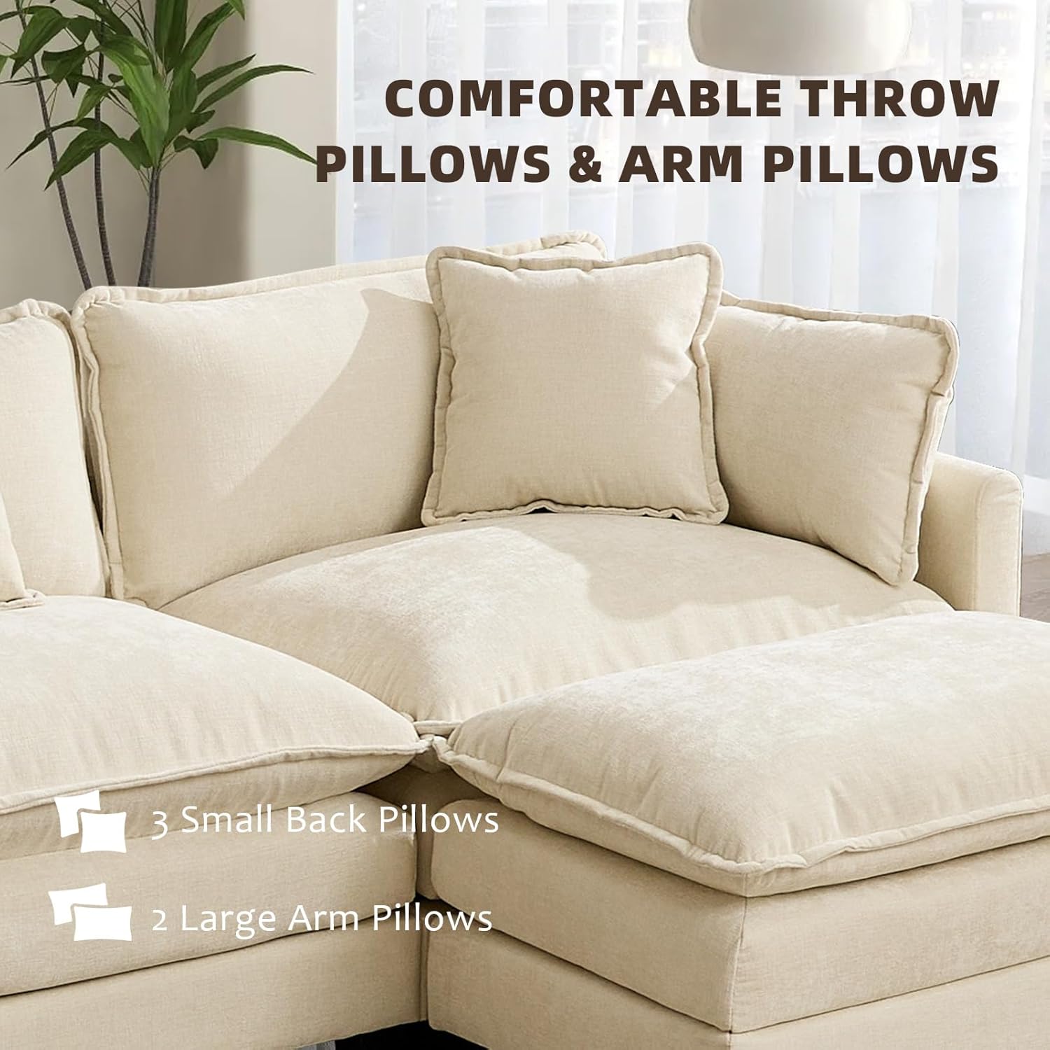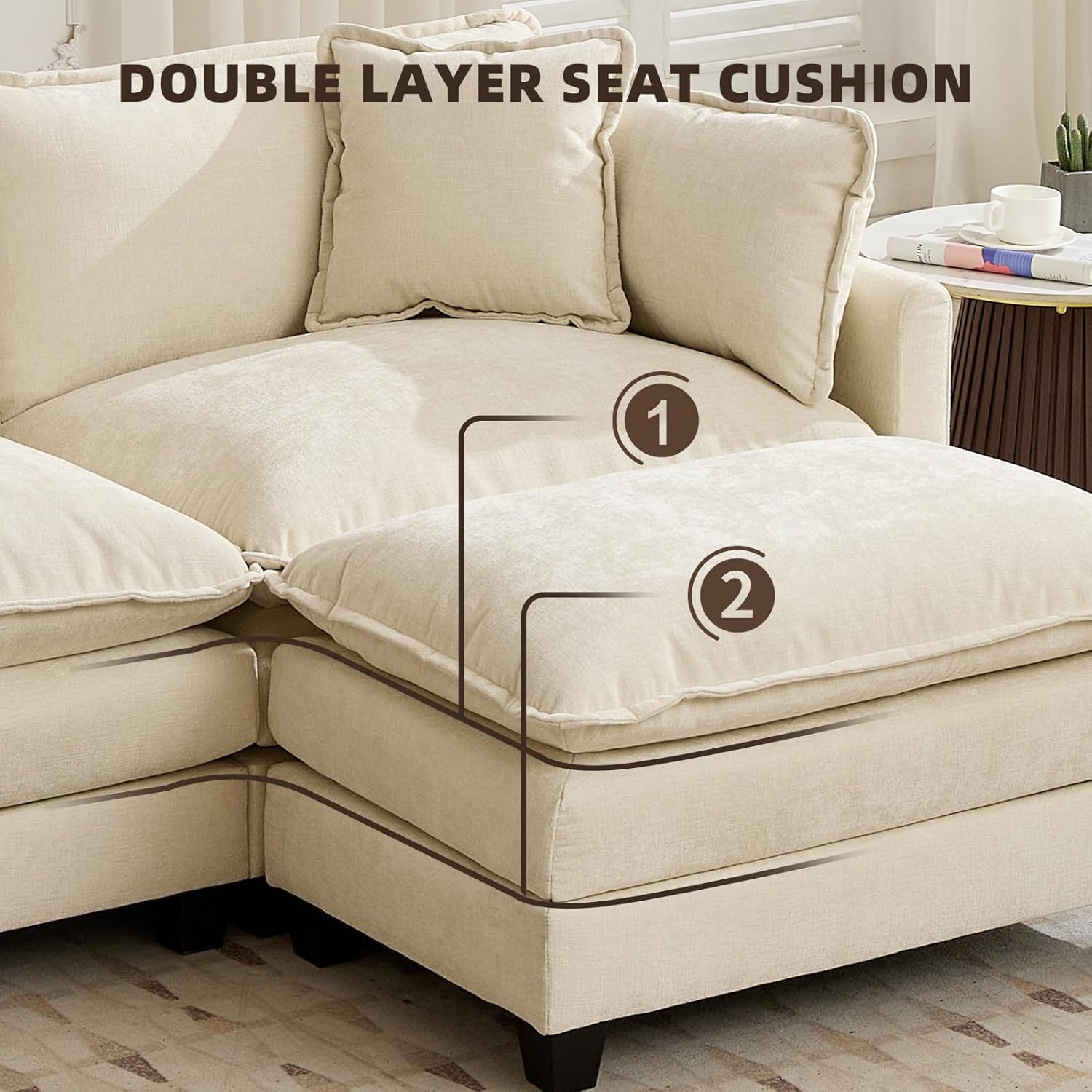 Extra Soft Cloud Sofa: This sofa is made of high-density chenille fabric, which is soft and skin-friendly. The sofa have a double-layer cushions design. Filled with high-density foam. The loveseat sofa is also equipped with two arm pillows and two square pillows. Backrests are extra wide and highly padded foam.