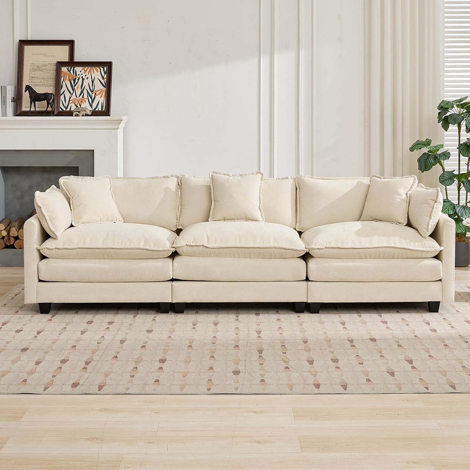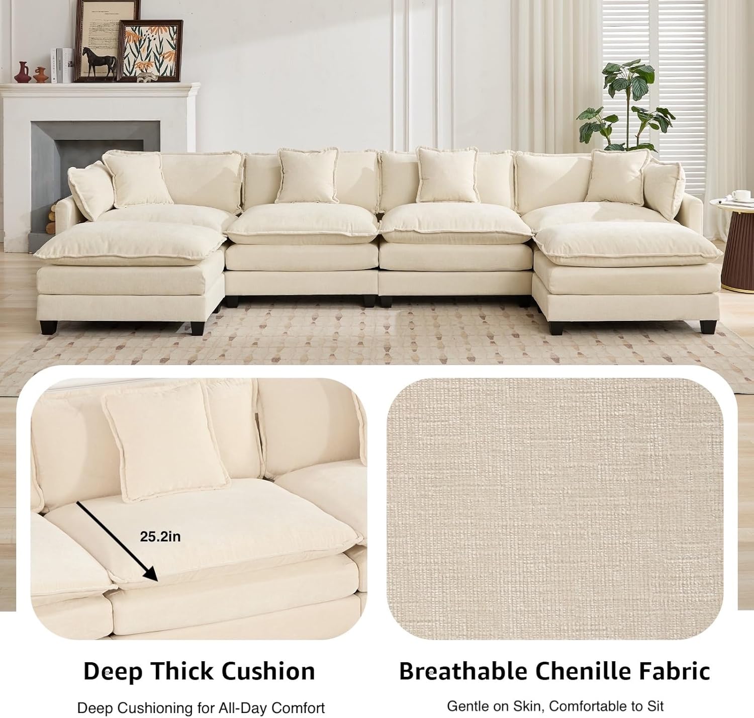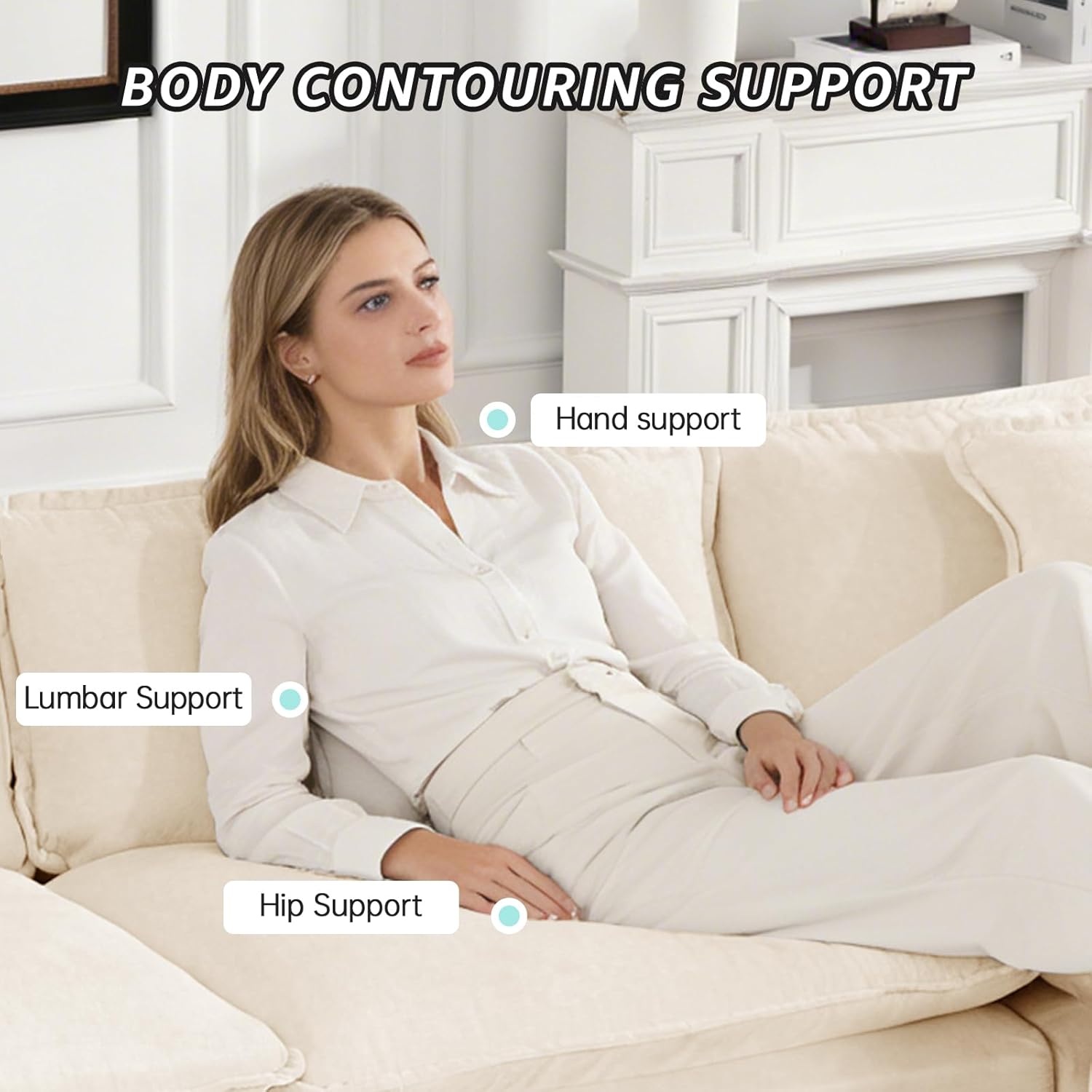 Cloud Like ComfortThis cloud couch sectional features a dual-cushion design and soft throw pillows, offering a plush, cloud-like lounging experience.