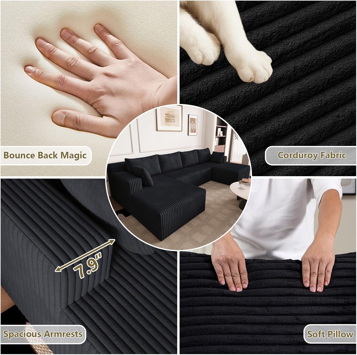 No Assembly Required: Say goodbye to complicated furniture assembly! Our boneless sofa arrives fully assembledsimply unbox, fluff up the cushions, and within 72 hours, you'll have a perfectly shaped corduroy sofa ready to enjoy. No tools, no hasslejust instant comfort and style. With dimensions of 124W x 59.8D x 24.8H, this spacious sofa is the ideal centerpiece for your living room, offering both style and comfort without any of the typical assembly frustrations.