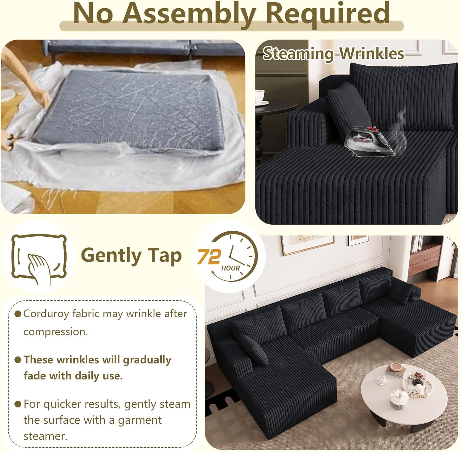 No Assembly Required: Say goodbye to complicated furniture assembly! Our boneless sofa arrives fully assembledsimply unbox, fluff up the cushions, and within 72 hours, you'll have a perfectly shaped corduroy sofa ready to enjoy. No tools, no hasslejust instant comfort and style. With dimensions of 124W x 59.8D x 24.8H, this spacious sofa is the ideal centerpiece for your living room, offering both style and comfort without any of the typical assembly frustrations.