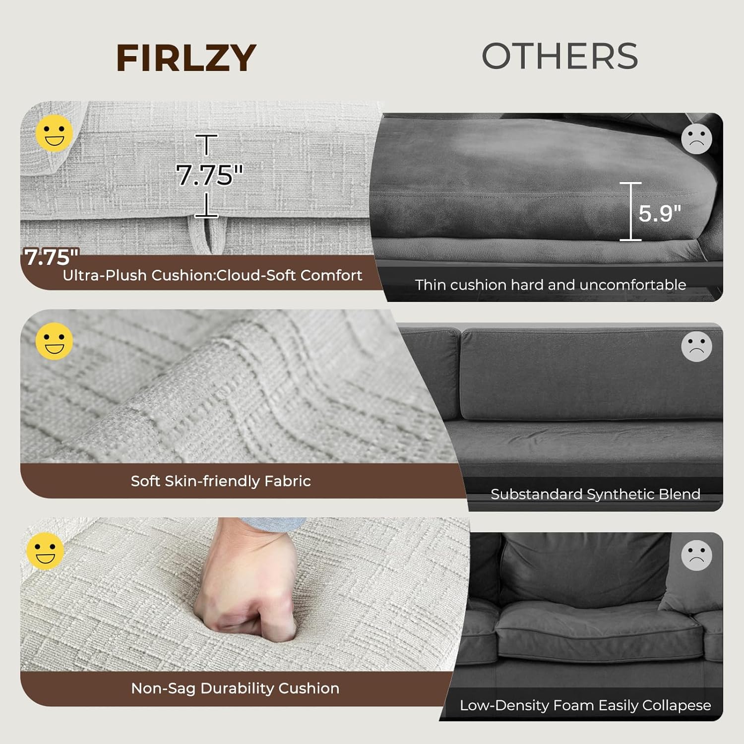 5. Sturdy Construction & Hassle-Free Setup Rest assured on a sofa built to endure. Supported by a solid wood frame and sturdy connectors, each seat boasts a high weight capacity. We've simplified assembly with clear instructions. Please note, the sofa ships in multiple packages for your convenience and may not arrive simultaneously. Our dedicated customer service team is always here to help if you have any questions.