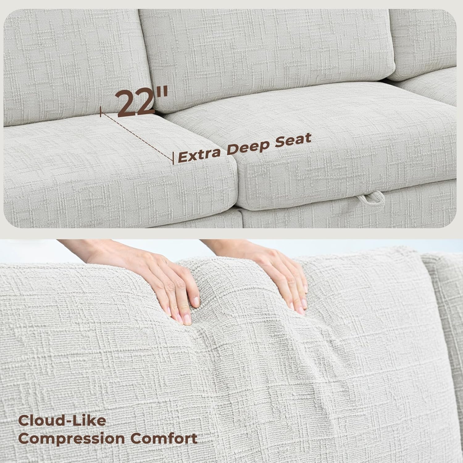 3. Premium Fabric with Removable, Easy-Care Covers Crafted from soft yet durable modern fabric, this sofa is breathable and pet-friendly. The completely removable covers are machine-washable and wrinkle-resistant, guaranteeing easy maintenance and a fresh look for years.
