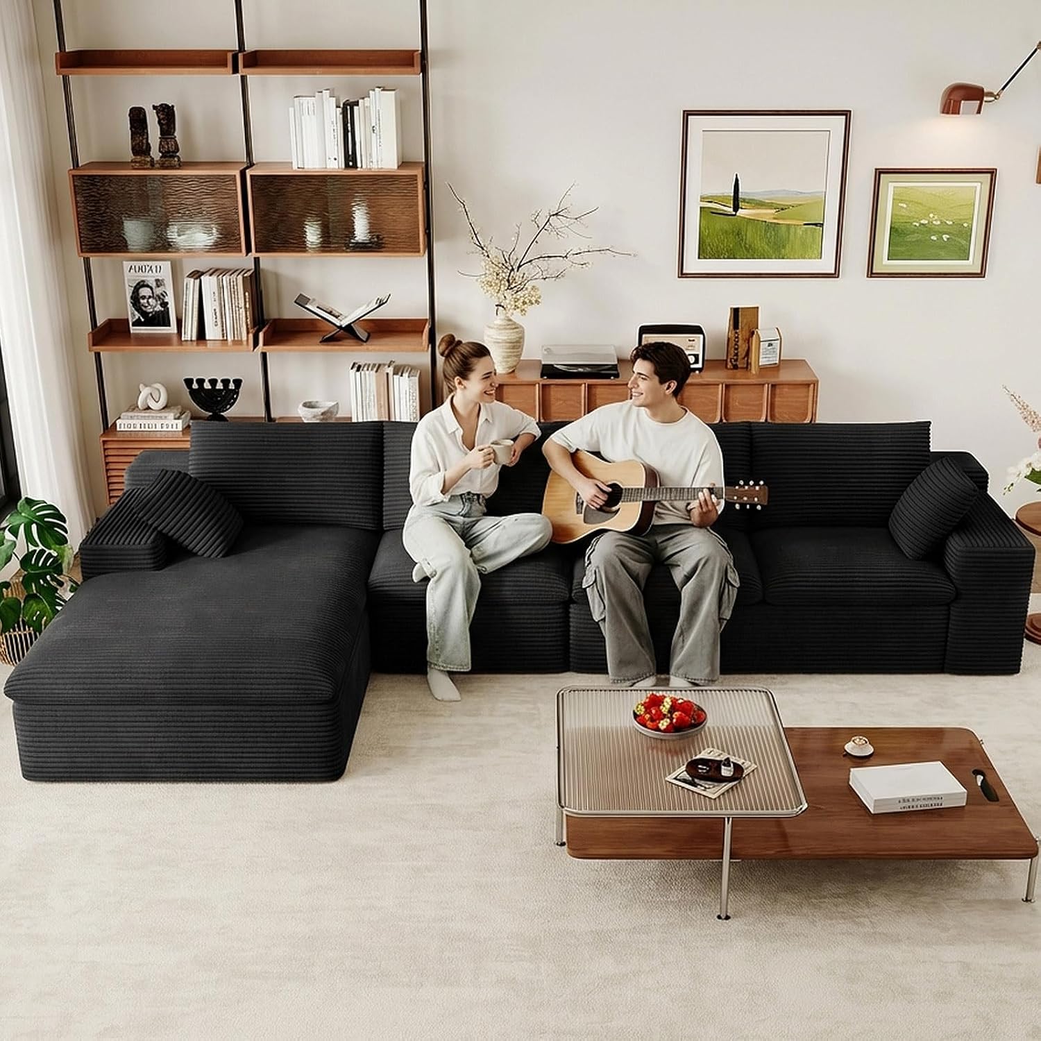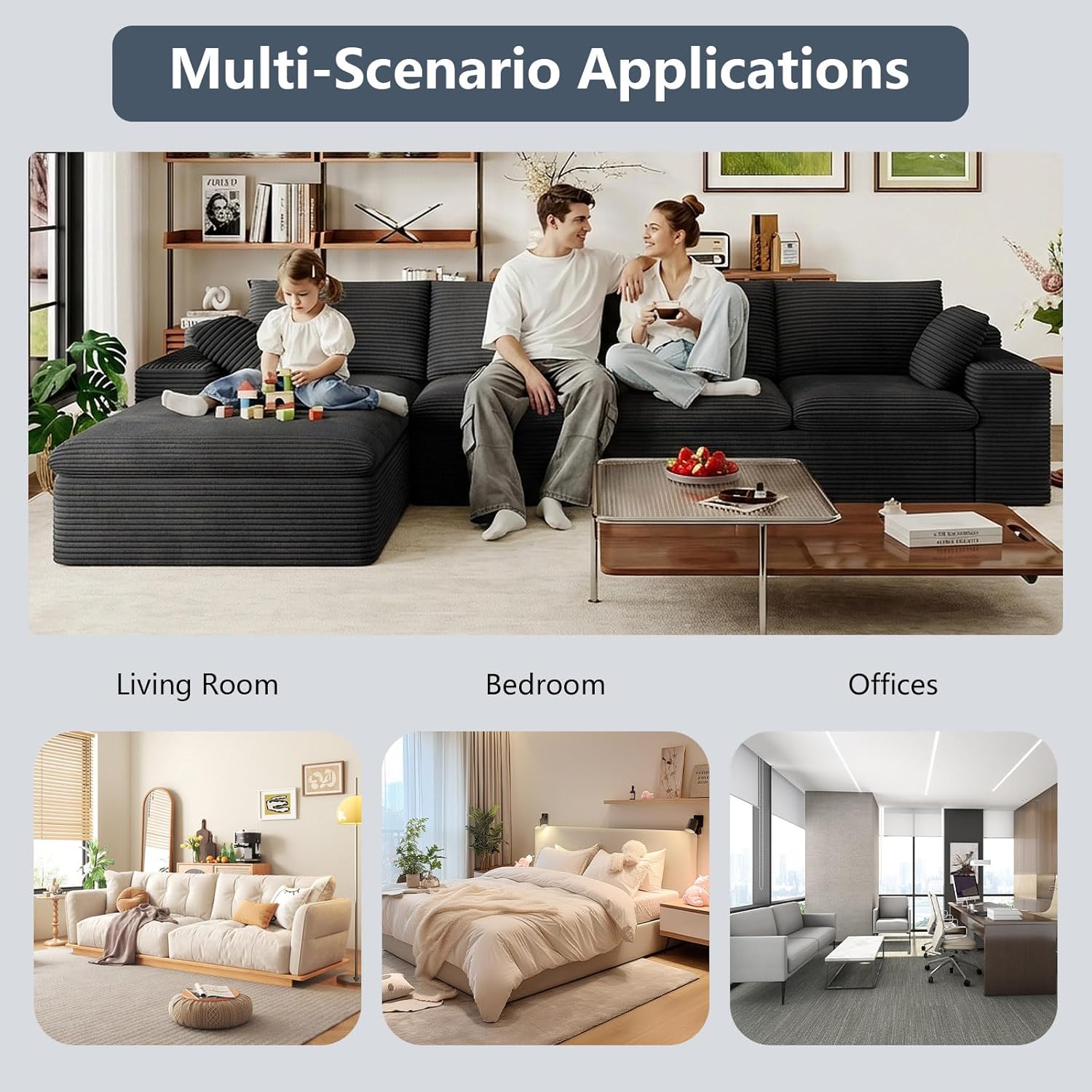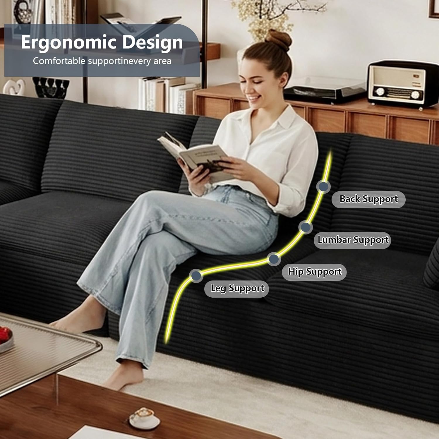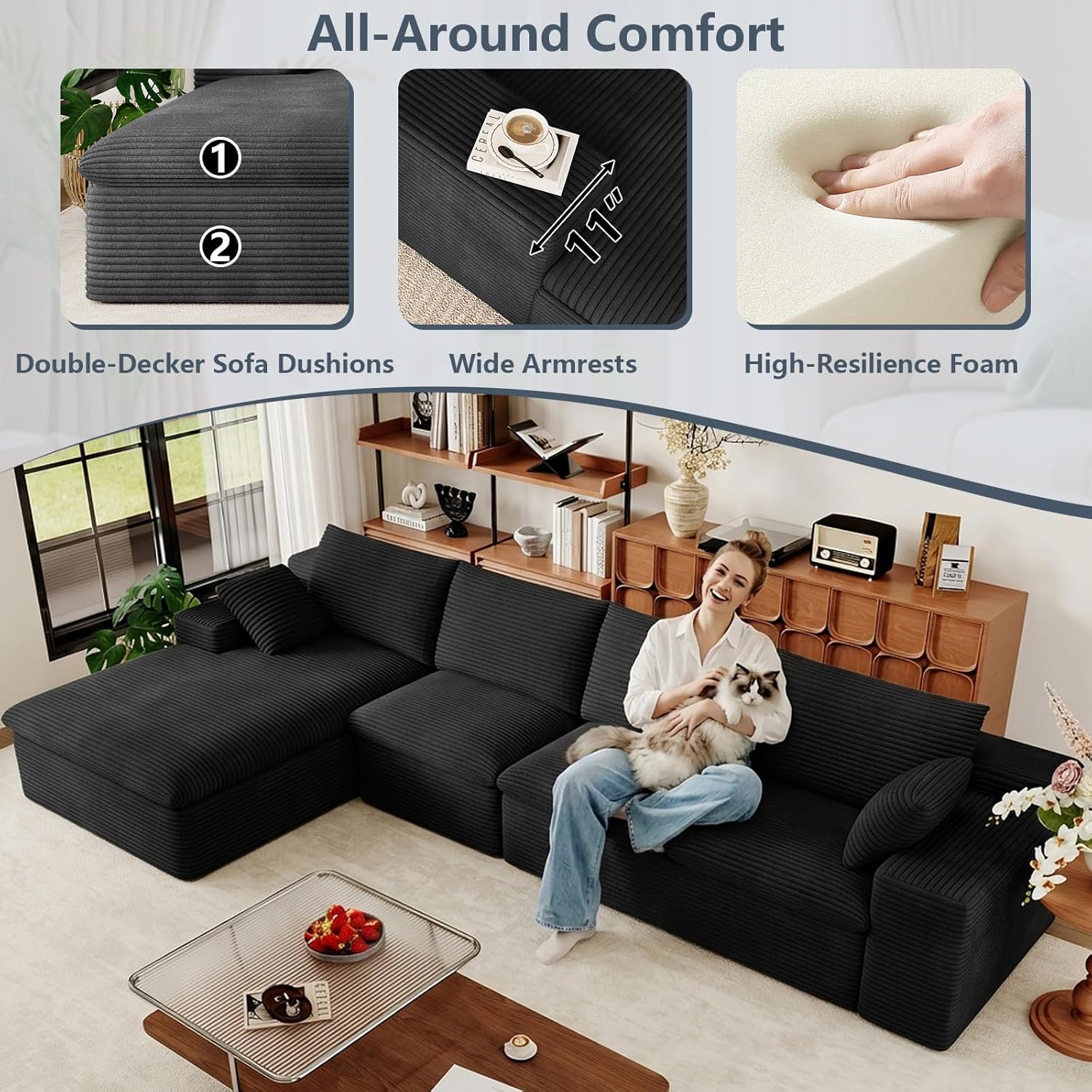 LUXURY CORDUROY SECTIONAL SET:This living room couch is made of luxurious corduroy fabric that is super soft and cozy. Its unique texture and plush feel provide gentle pampering throughout the season, making it a cozy and stylish accent to your living space