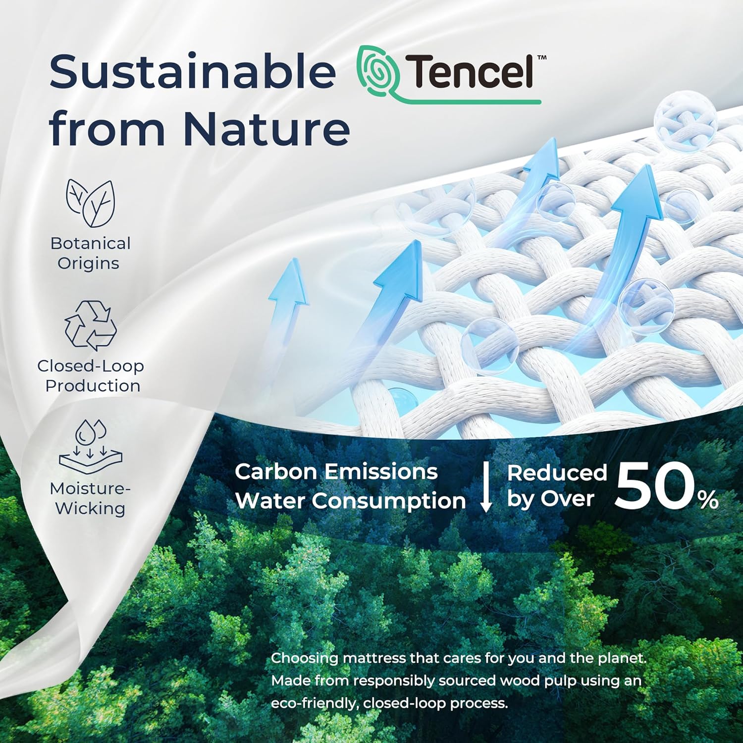 Eco-conscious and Certified Safe: This mattress features TENCEL fibers, known for their Plant-based properties. CertiPUR-US Certified foam provids a Child-Safe & Chemical-Free sleeping environment especially for the health-conscious sleepers.