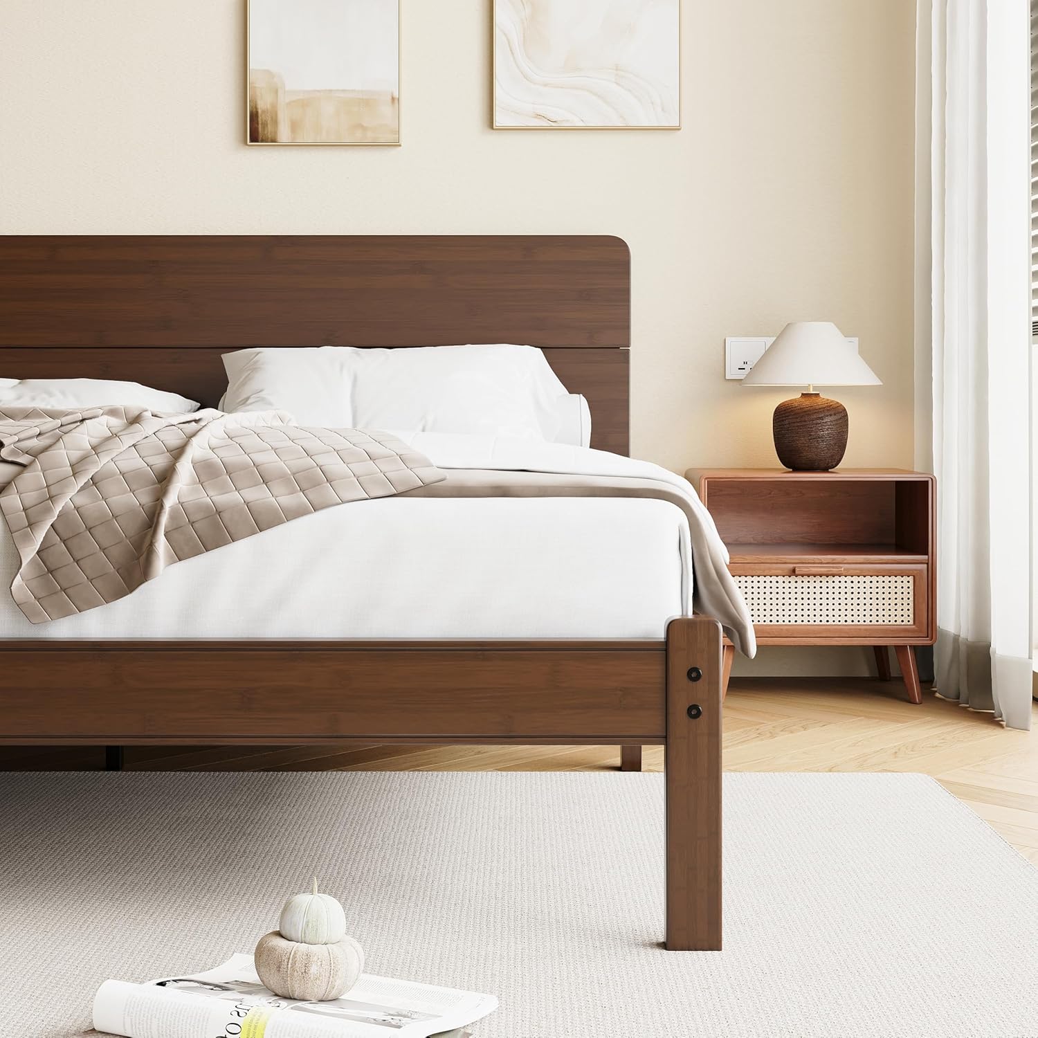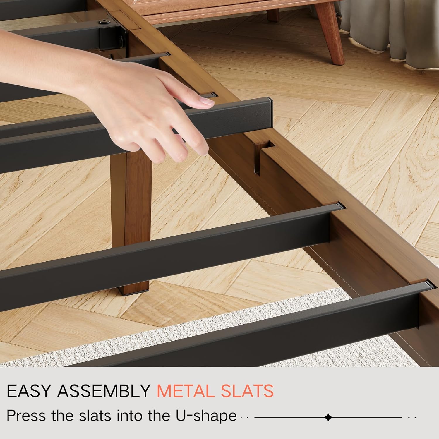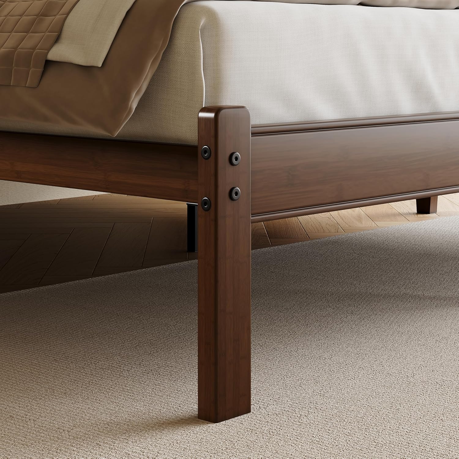 Premium Bamboo Construction: This solid bamboo queen bed frame combines 13 reinforced steel slats and 3 center support metal legs for stability, supporting up to 1,500 lbs. Built to last, ensuring a peaceful, stable sleep every night
