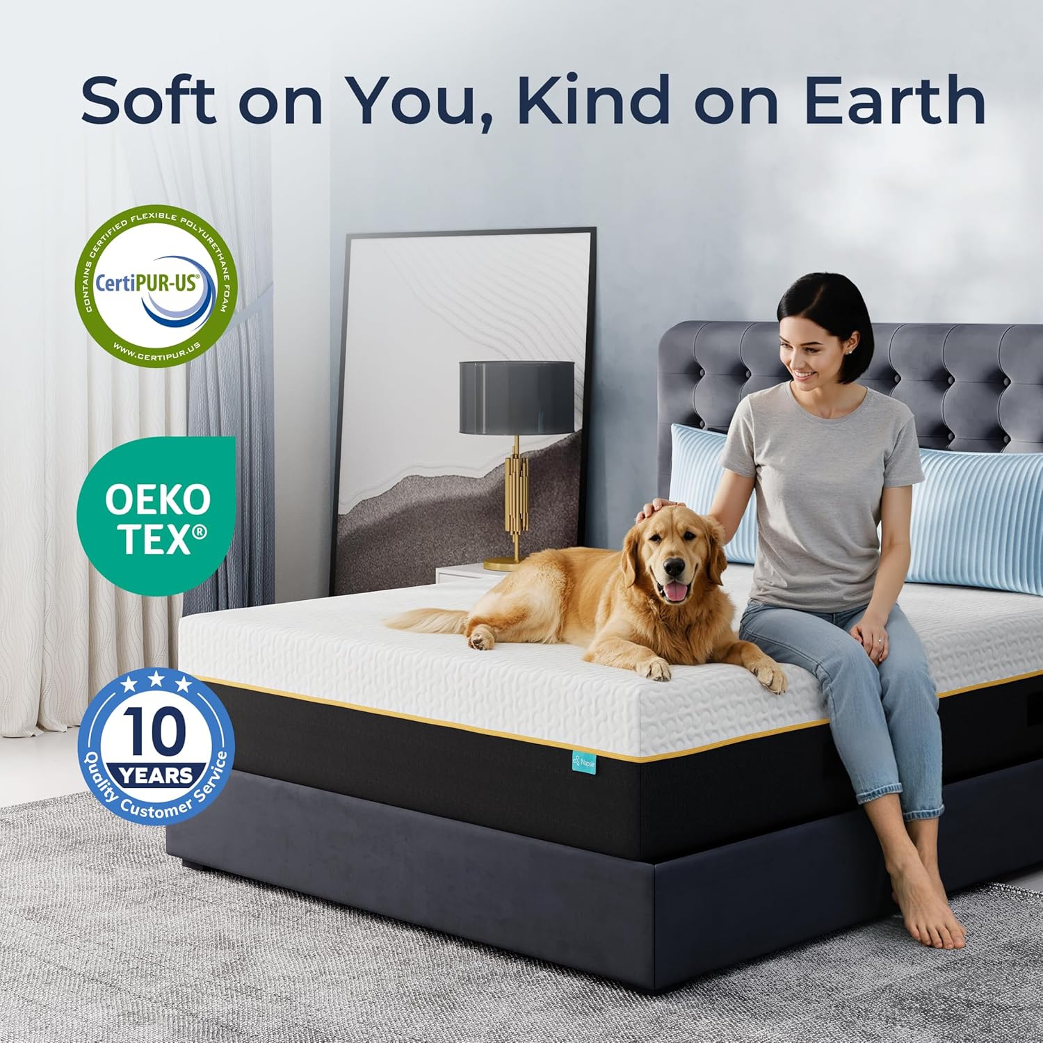 Eco-conscious and Certified Safe: This mattress features TENCEL fibers and natural characoal, known for their Plant-based properties. CertiPUR-US Certified foam provids a Child-Safe & Chemical-Free sleeping environment especially for the health-conscious sleepers.