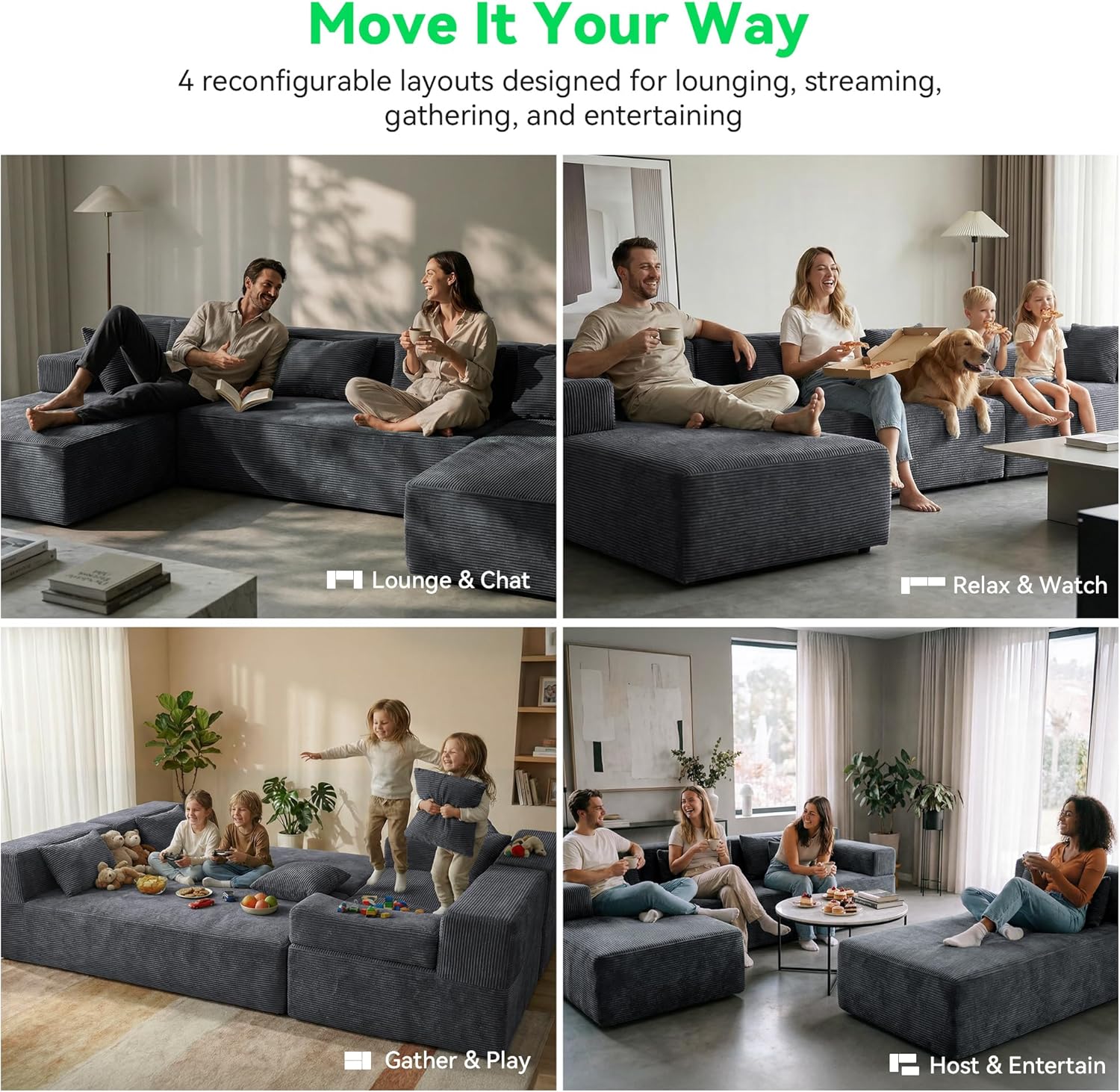 1Lounge & Chat2Relax & Watch3Gather & Play4Host & Entertain