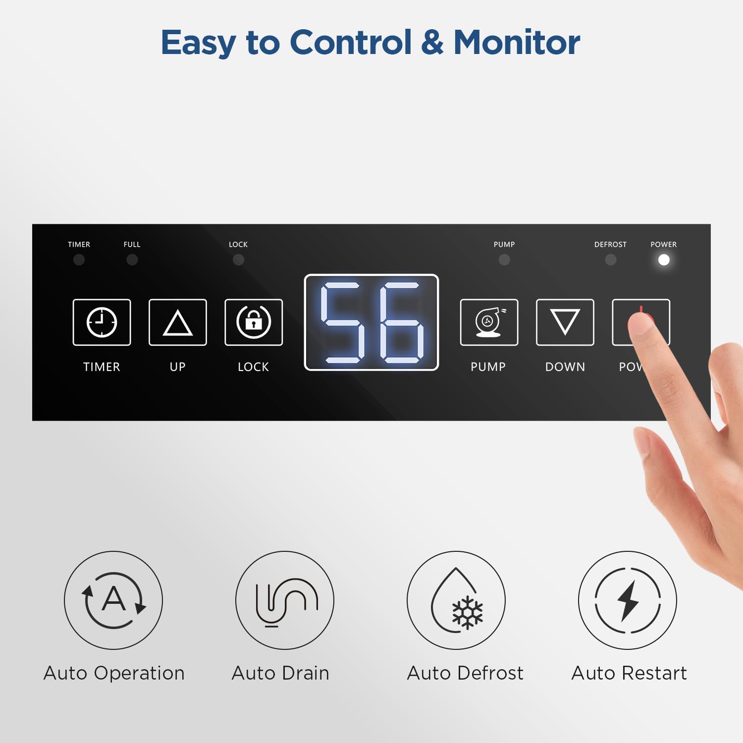 Built-In Pump And Gravity Drain For Continuous OperationEquipped with a built-in condensate pump and included drain hose, this dehumidifier supports automatic upward drainage up to 16.4 ft. It also offers gravity drainage for flexible installation. Designed for continuous draining without manual emptying, making it suitable for long-hour operation in basements, warehouses, and job sites.
