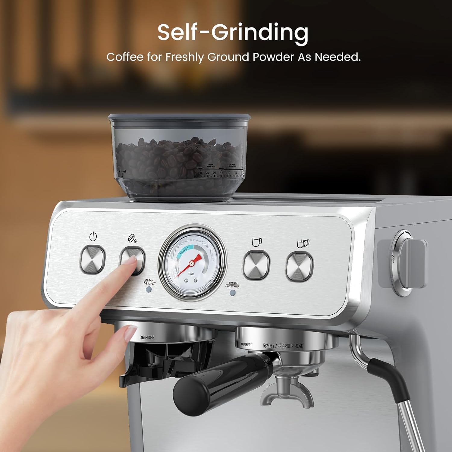 IDEAL PRESSURESmoother espresso machine with grinder, 15 Bar Expresso Coffee Machines with Milk Frother Steam Wand, Extracting maximum flavor and aroma from every coffee ground. Enjoy caf-quality depth and crema in every cup, just like your favorite barista makes!