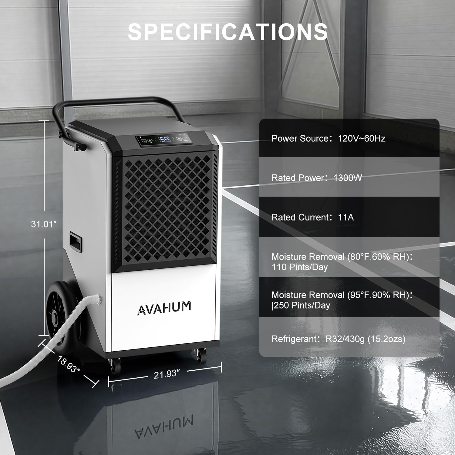 GRAVITY DRAINAGE WITH EXTERNAL PUMP COMPATIBILITY Designed with gravity drainage outlet and included drain hose for continuous draining without manual bucket emptying. This unit does not include a built-in pump but supports connection to an external condensate pump for upward drainage when required, offering flexible installation for commercial and industrial setups.