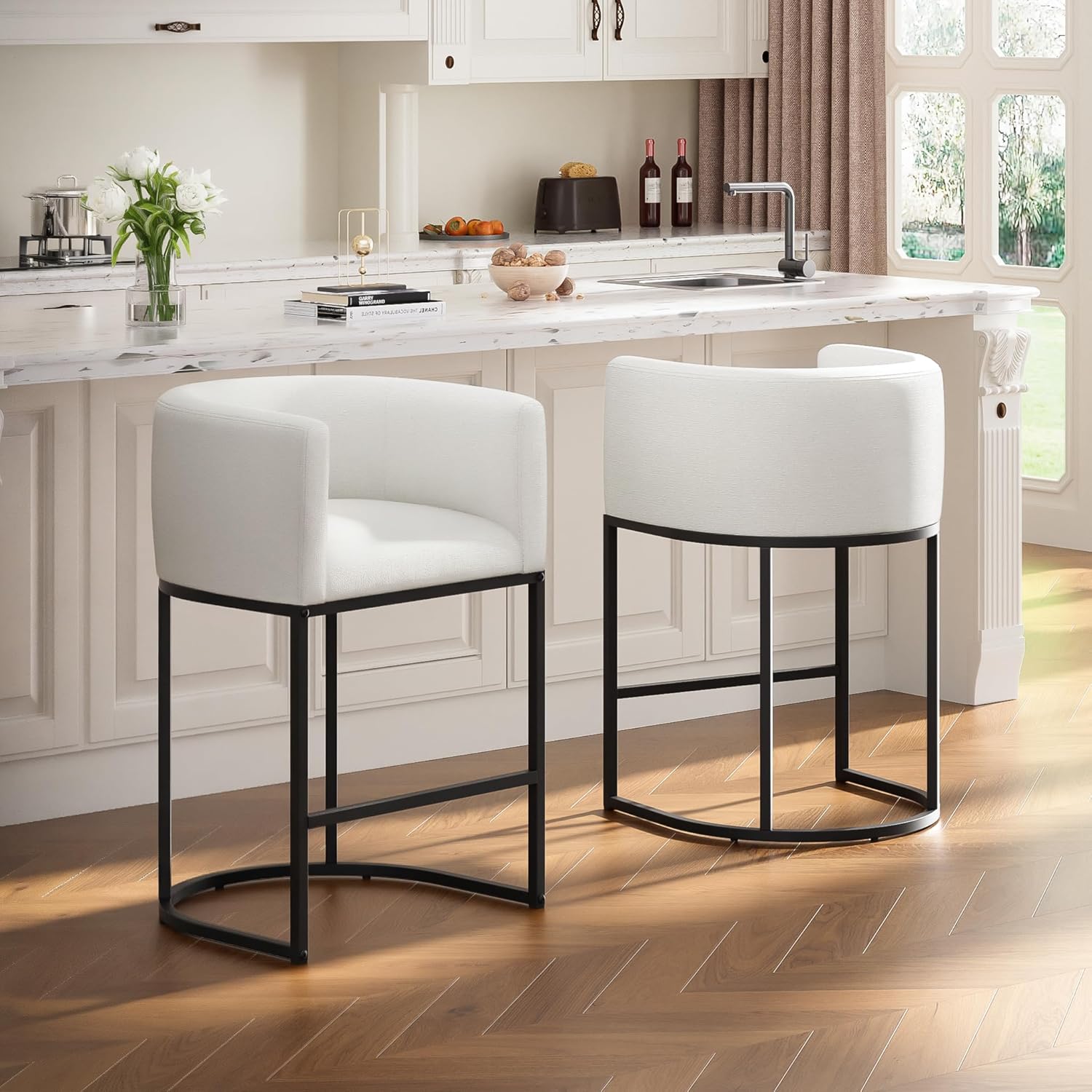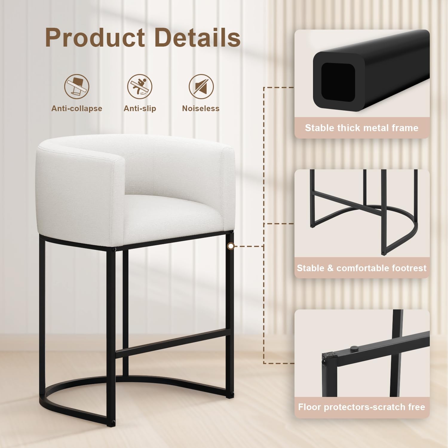 Super Easy To Assemble:This kitchen bar stool only needs 10-15 minutes to install. Packed with assembly instructions, screws, and assembly tools. Counter height barstools are made of durable & sturdy metal frames that provide great stability and durability, they can hold up to 450 lbs in a static state.