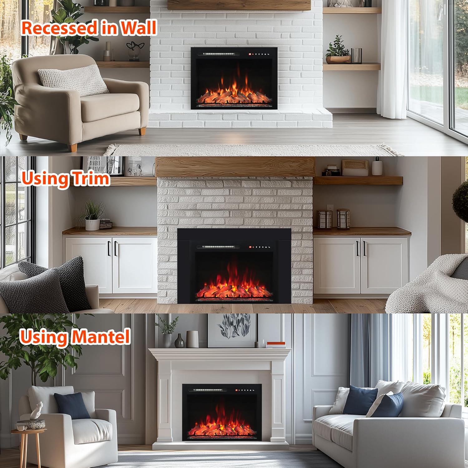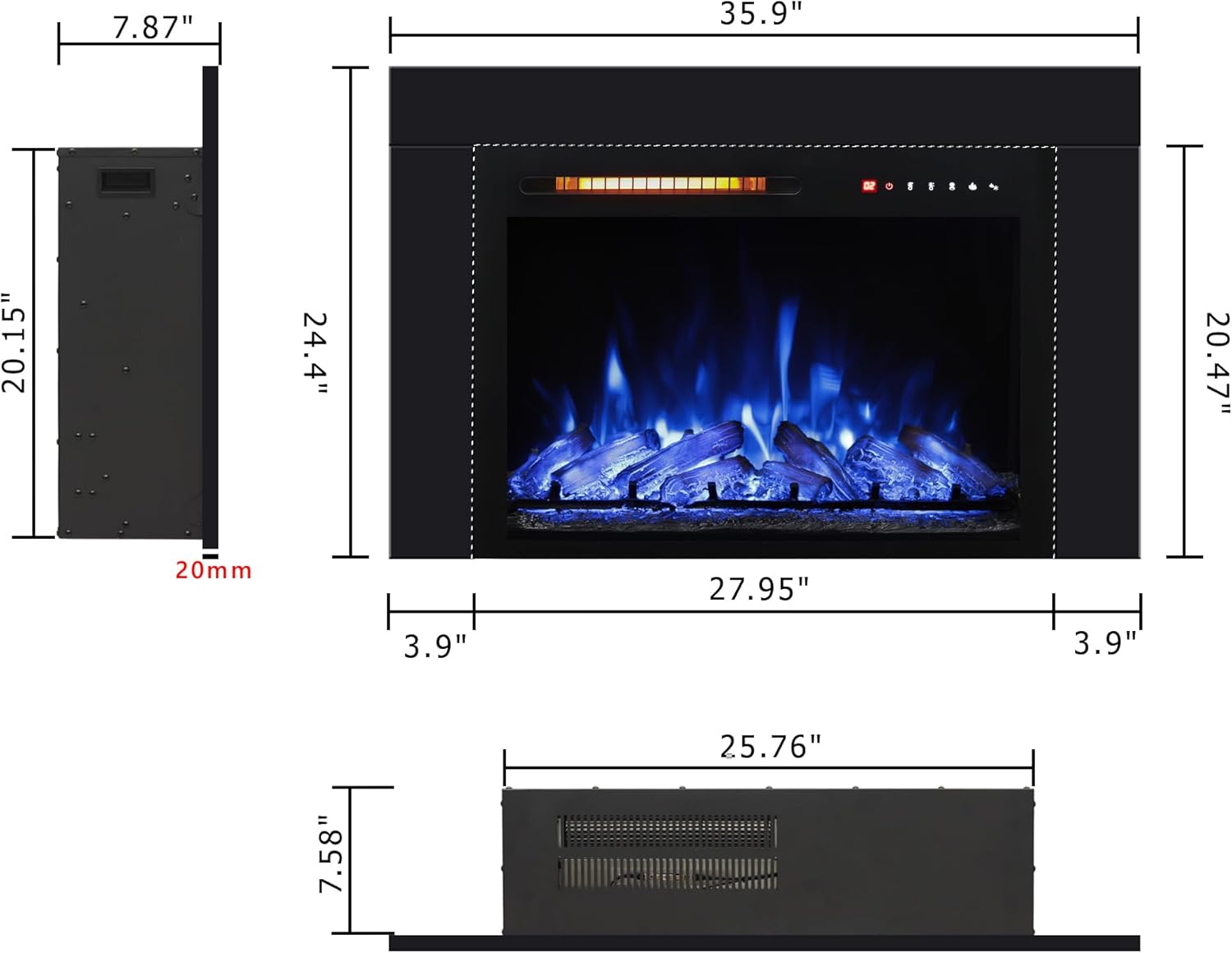 Two Installation MethodWall mounted/Recessed electric fireplace Inserts in wall or TV stand. All installation methods are save space. The operation is simple, just assemble the bracket on the wall or remove the bracket and insert it into the wall.