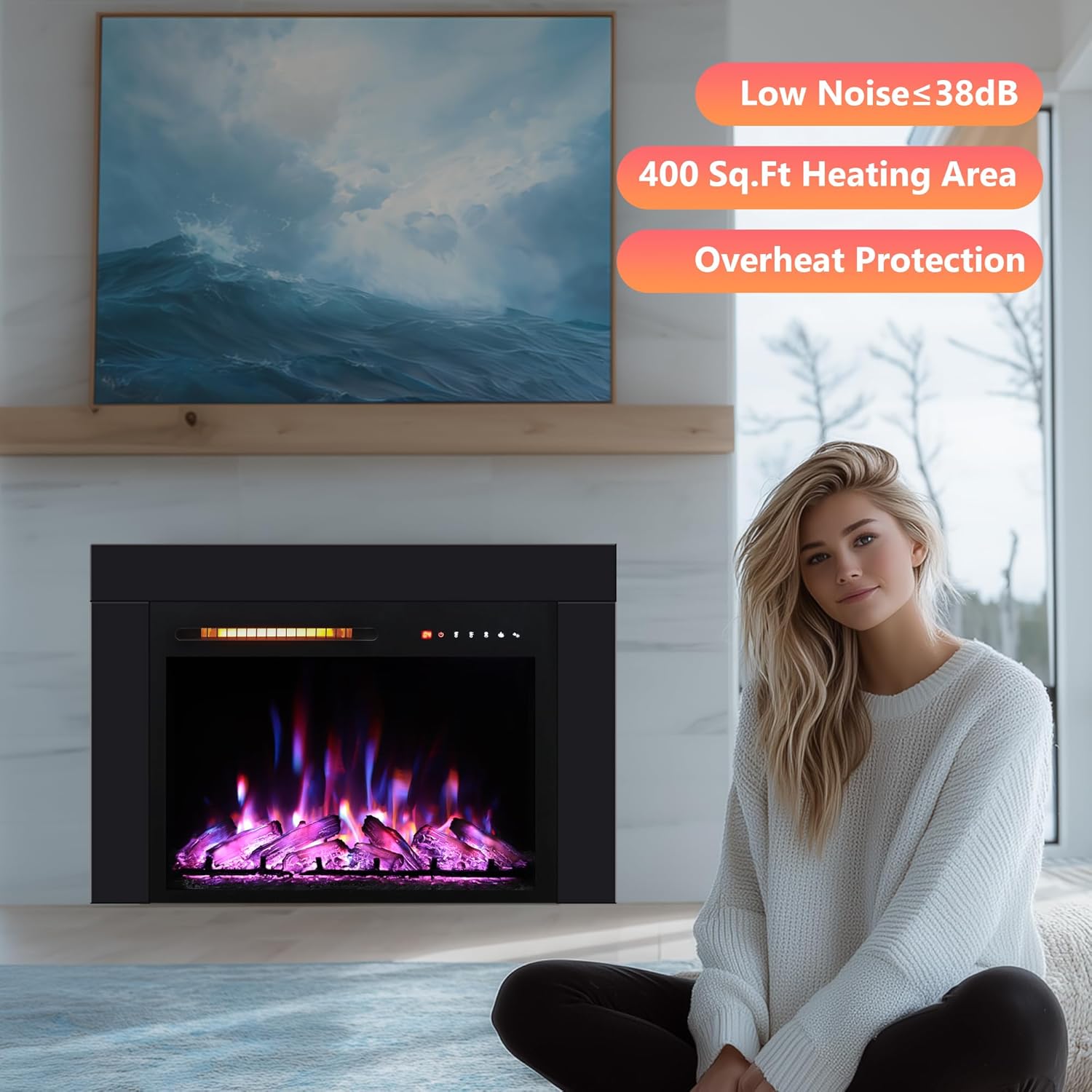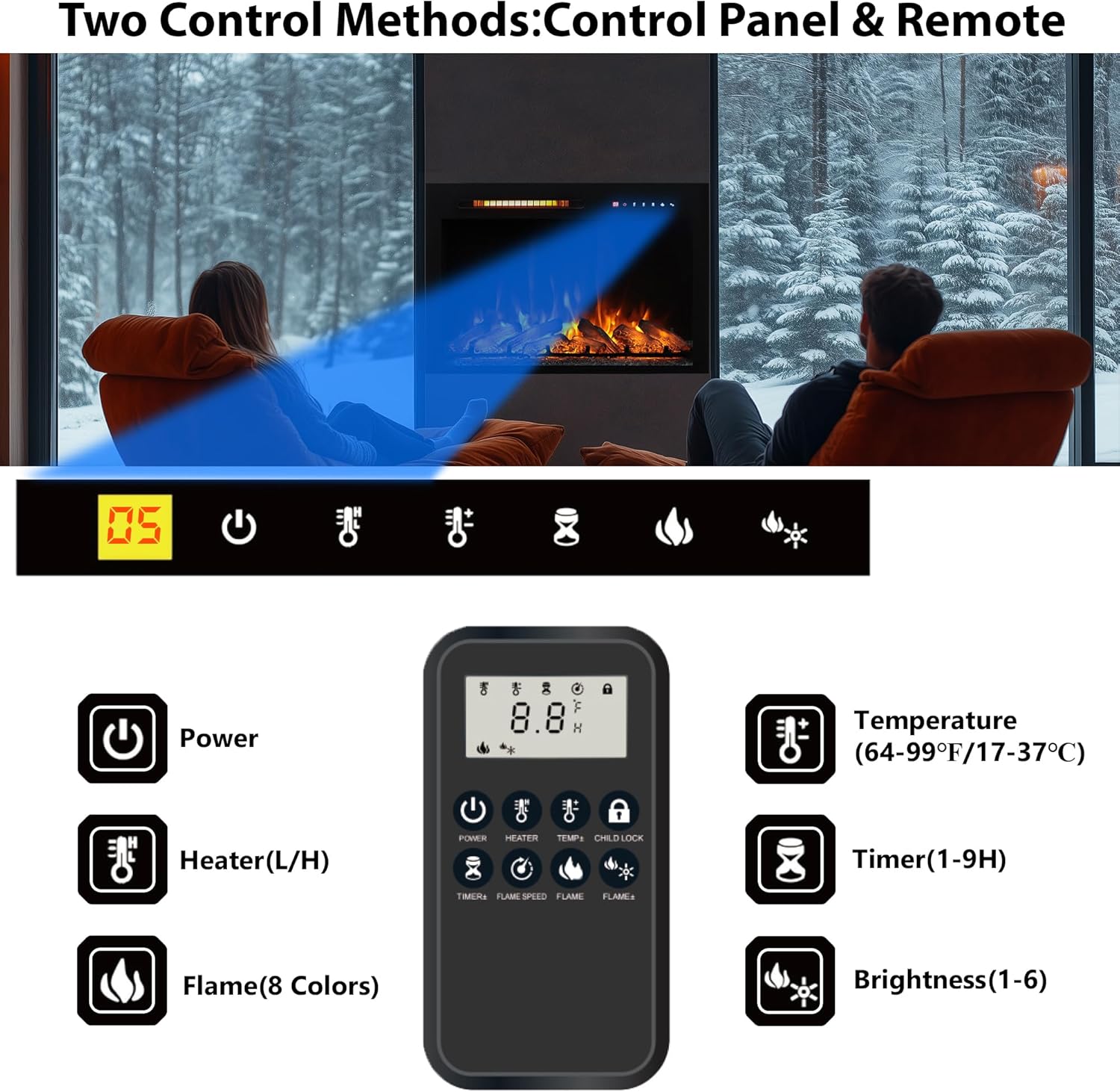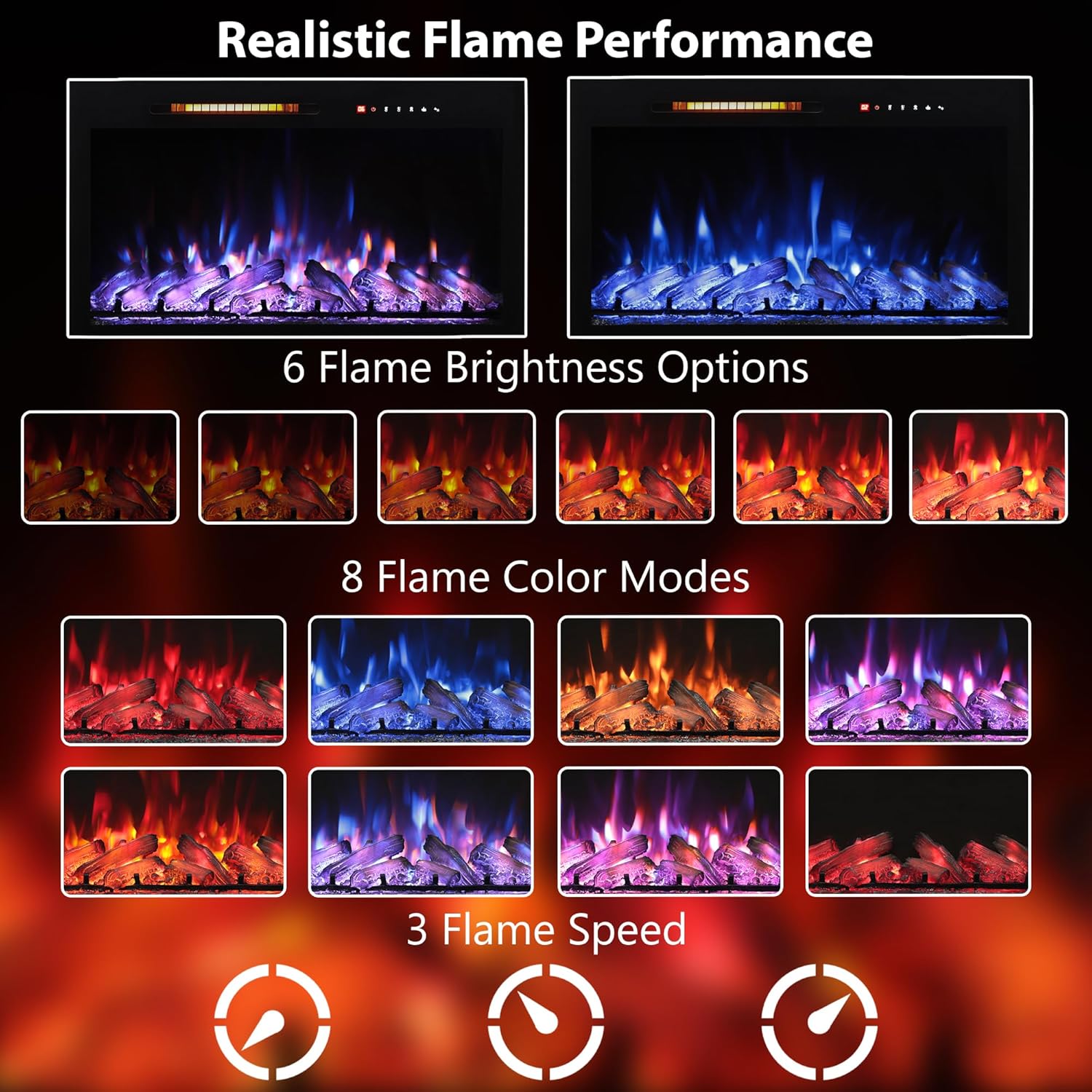 Multiple Flames CombinationsThis 28 inch electric fireplace has 8 flame colors.6 flame brightness. Bringing a beautiful and novel modern design to your home.