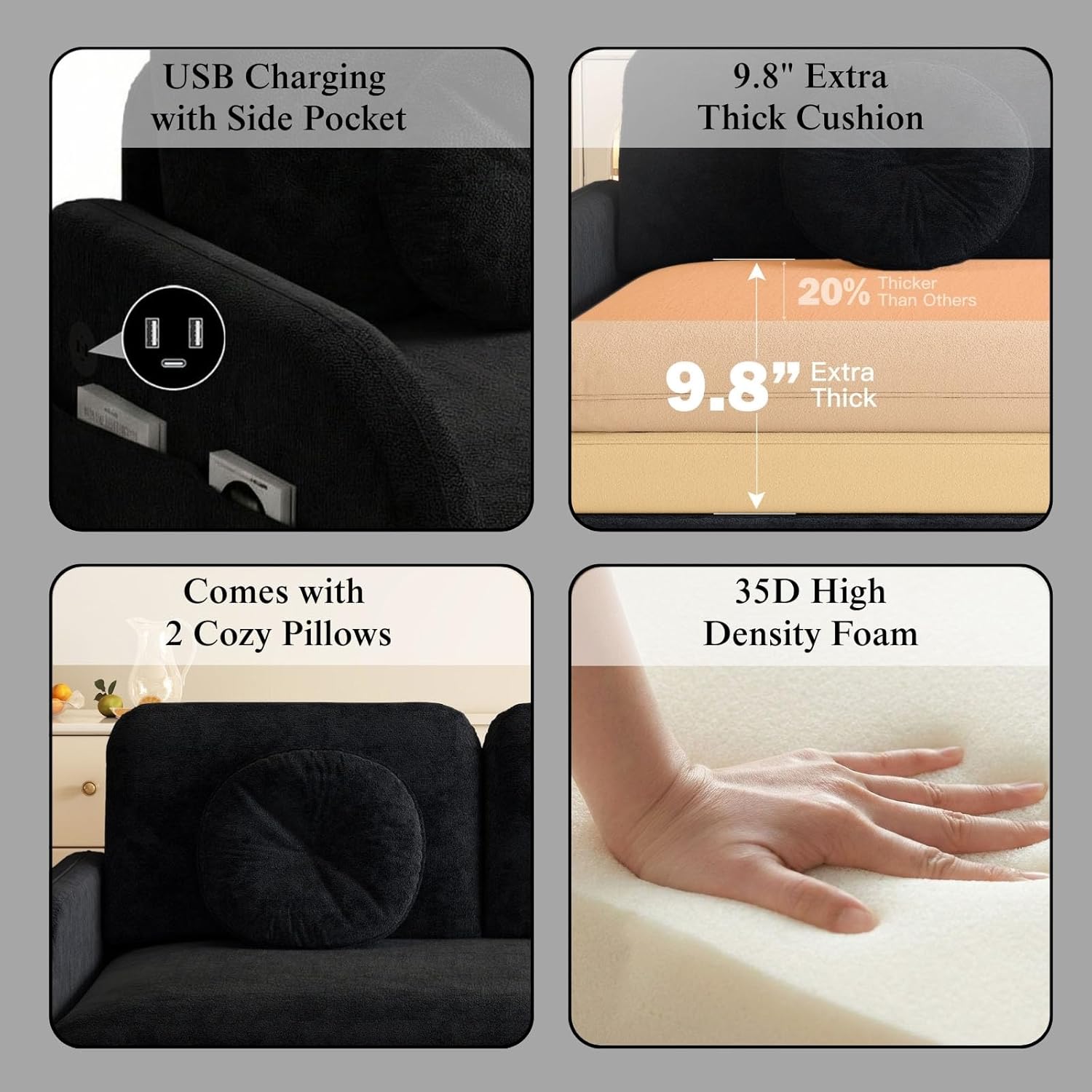 Built-In USB Ports for Everyday Convenience. Charge your phone, tablet, or e-reader without leaving the couch. Integrated USB ports keep your devices within reach, perfect for apartments, living rooms, or home offices.