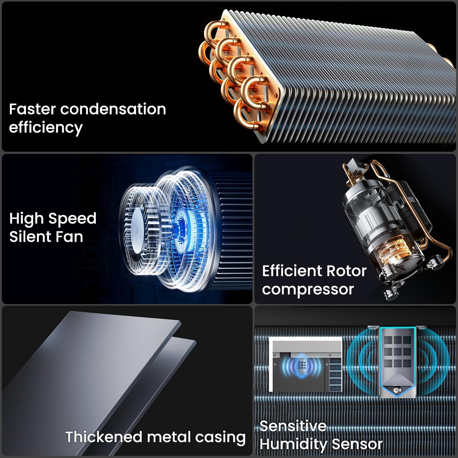 INDUSTRIAL MOISTURE CONTROL FOR LARGE SPACES Engineered to remove up to 320 pints of moisture per day (95F, 90% RH), this heavy-duty dehumidifier is suitable for areas up to 9,500 sq.ft. Designed for warehouses, basements, crawl spaces, workshops, garages, construction zones, and restoration projects where high-capacity humidity control is required.
