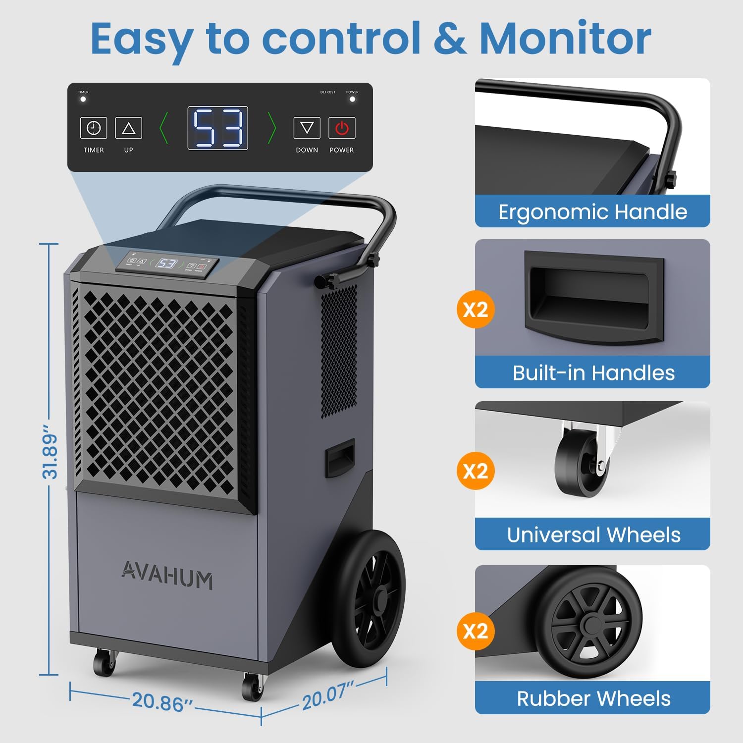 • 320 Pint Commercial Dehumidifier, Industrial Dehumidifier for 9,500 Sq.Ft Basement Warehouse Construction, Large Heavy Duty Commercial Grade Dehumidifiers with Drain Hose, Auto Defrost, Auto Restart