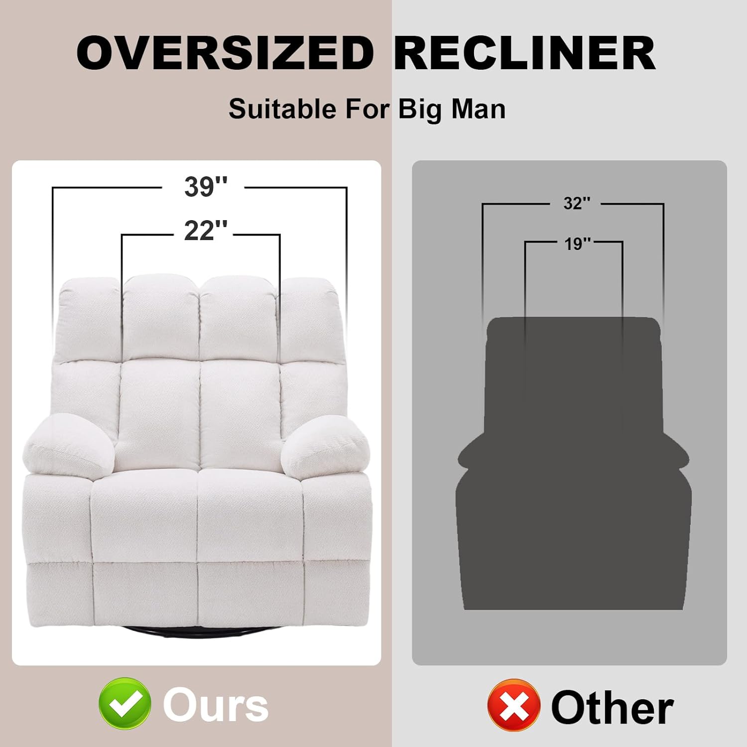 OVERSIZED AND MORE COMFORTABLE Experience excellent relaxation and comfort in our rocking chair designed with a spacious and comfortable seating area. This chair is larger in size 42.1"W x 37.4"D x 41.3"H to ensure a more spacious and comfortable experience.