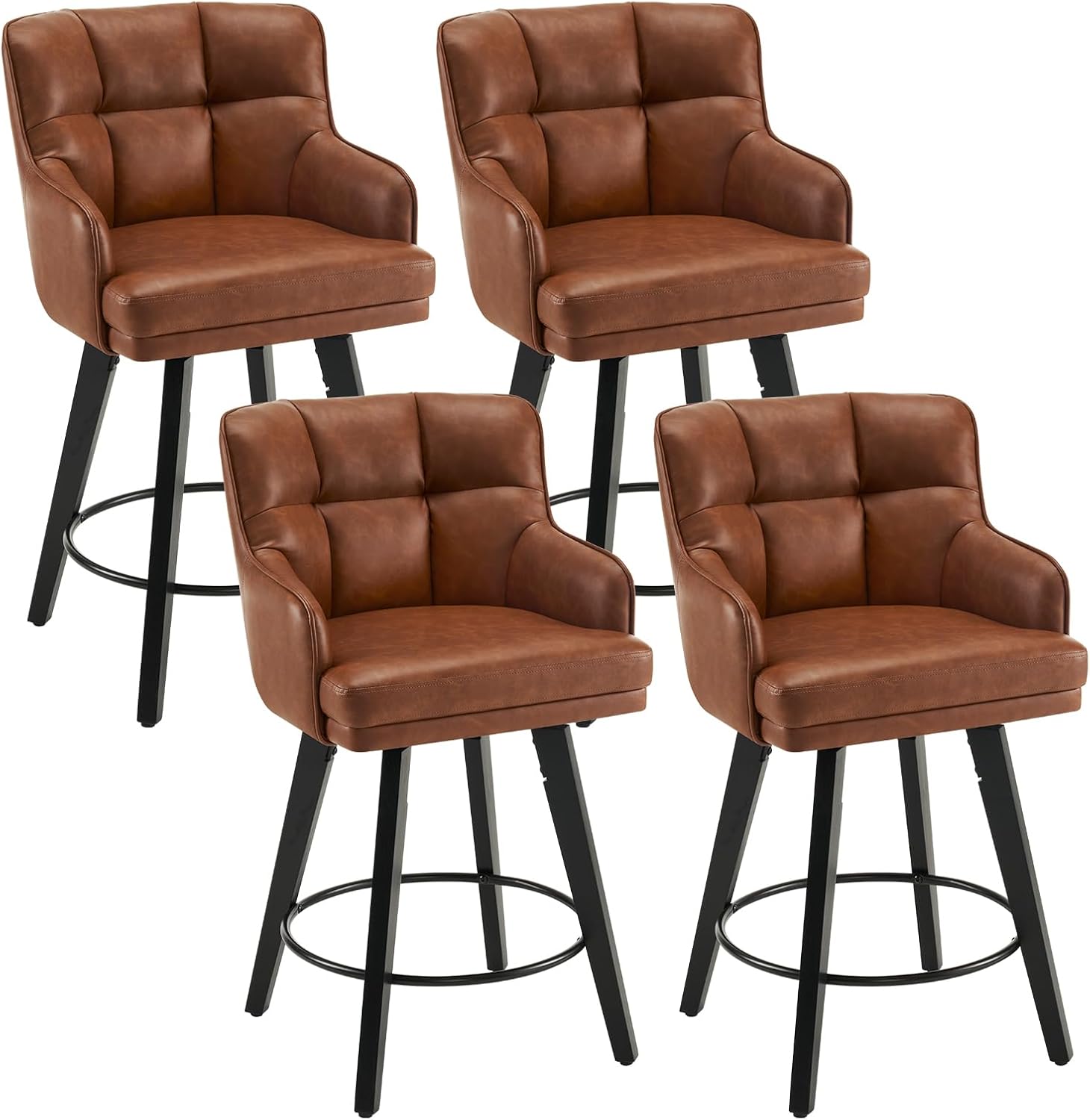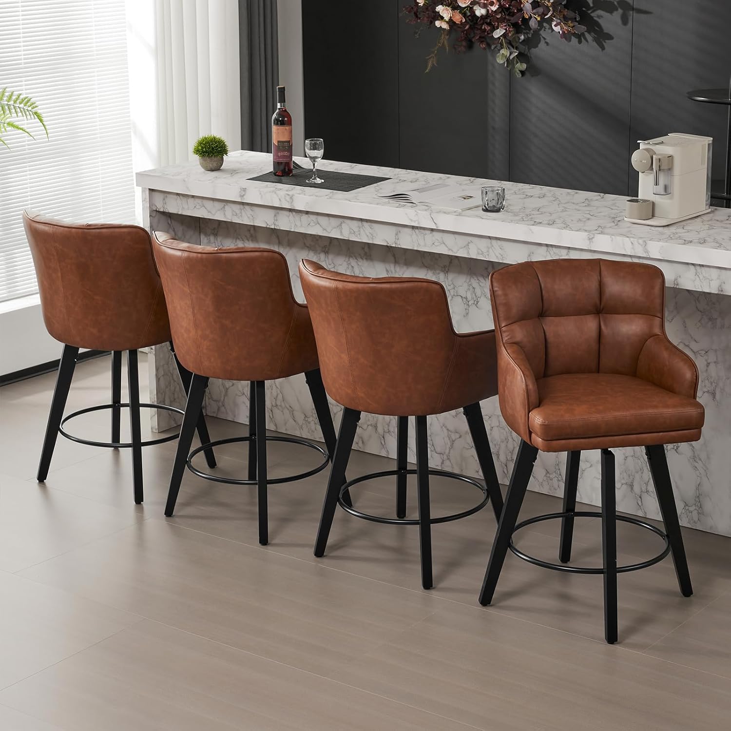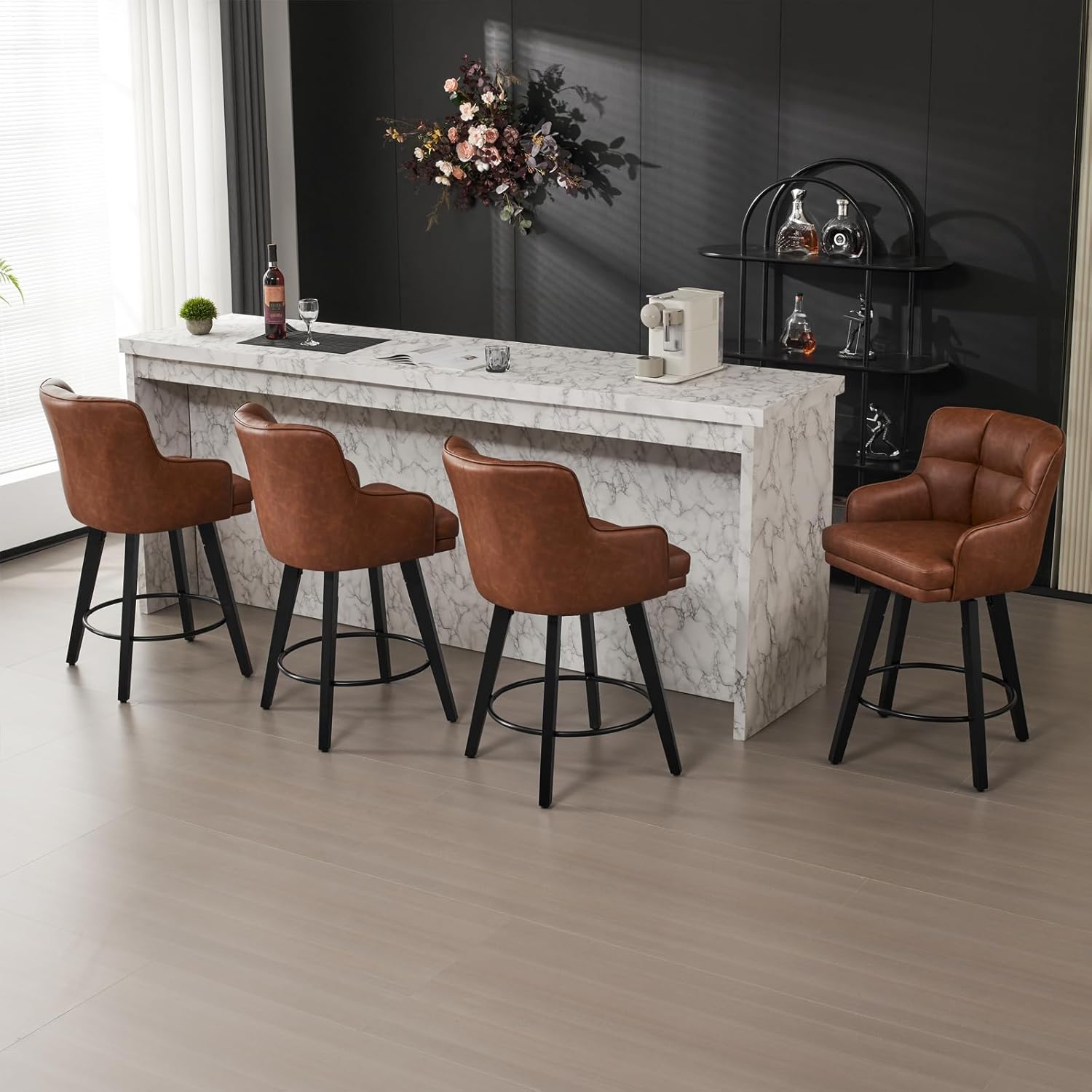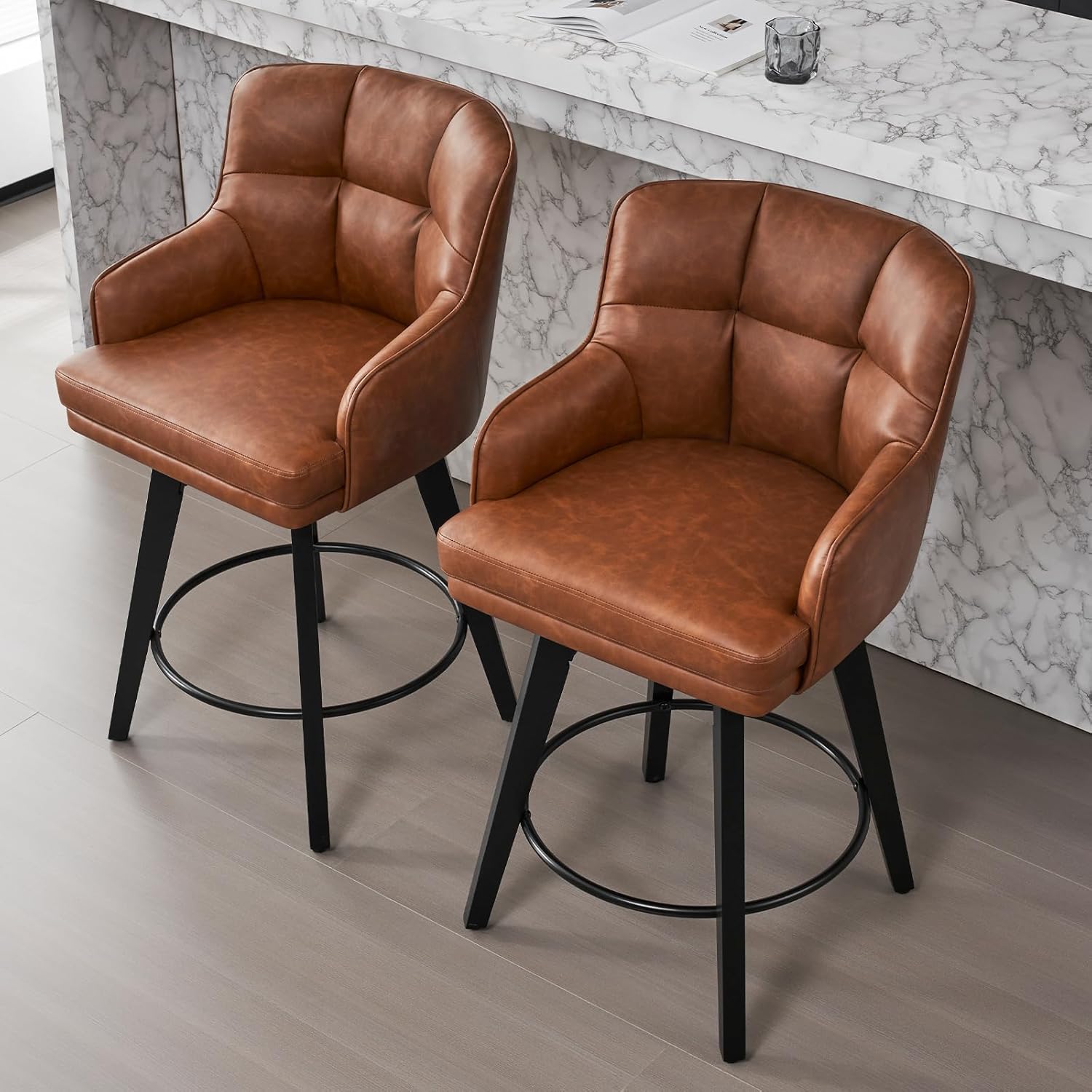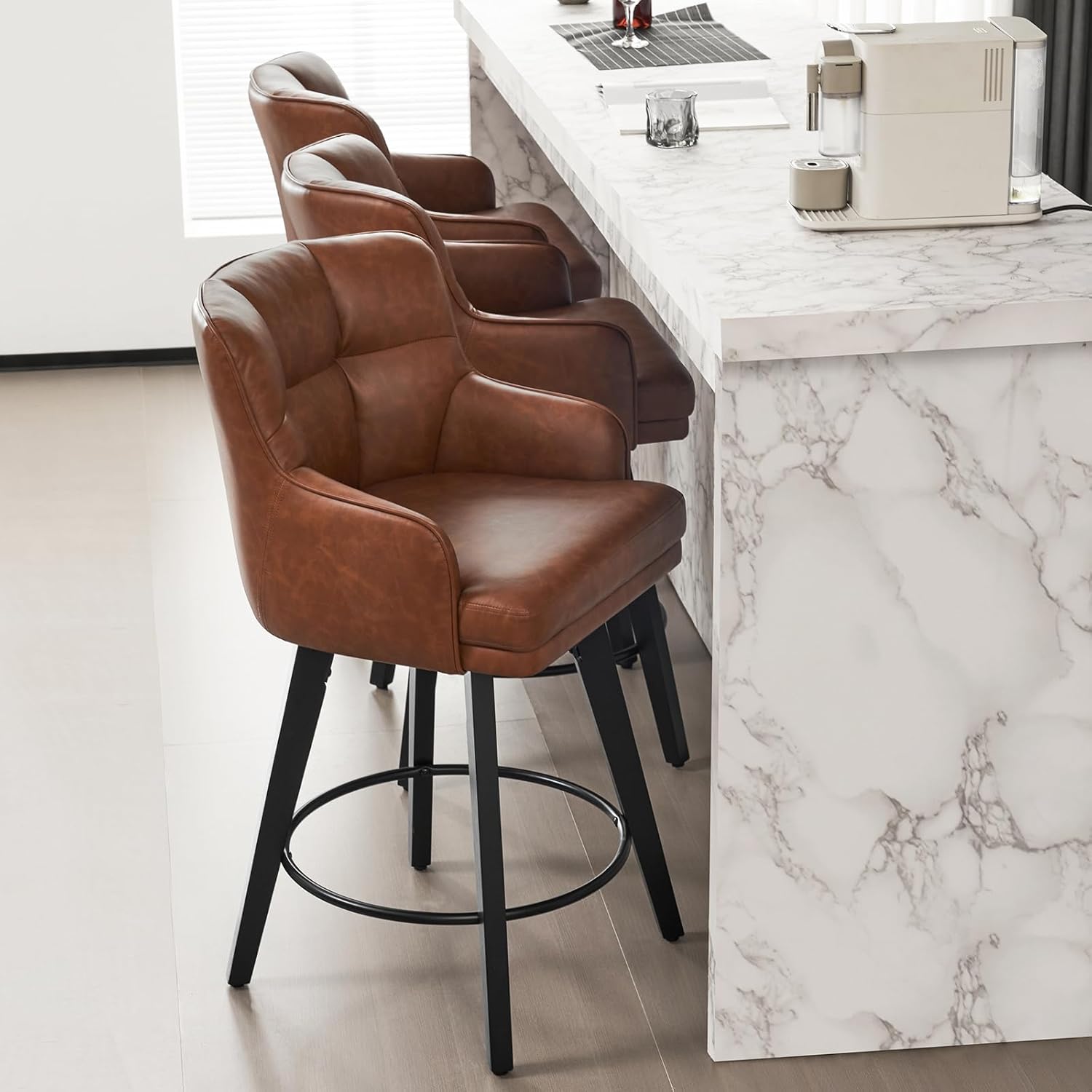 COMFORTABLE SEAT: Important internal parts of the bar stools are solid high-precision carbon steel frame, each chair weigh 23.37LBS; Bar stools with armrests can be stowed under the counter; Wide backs and double cushions bring a new experience to bars tools