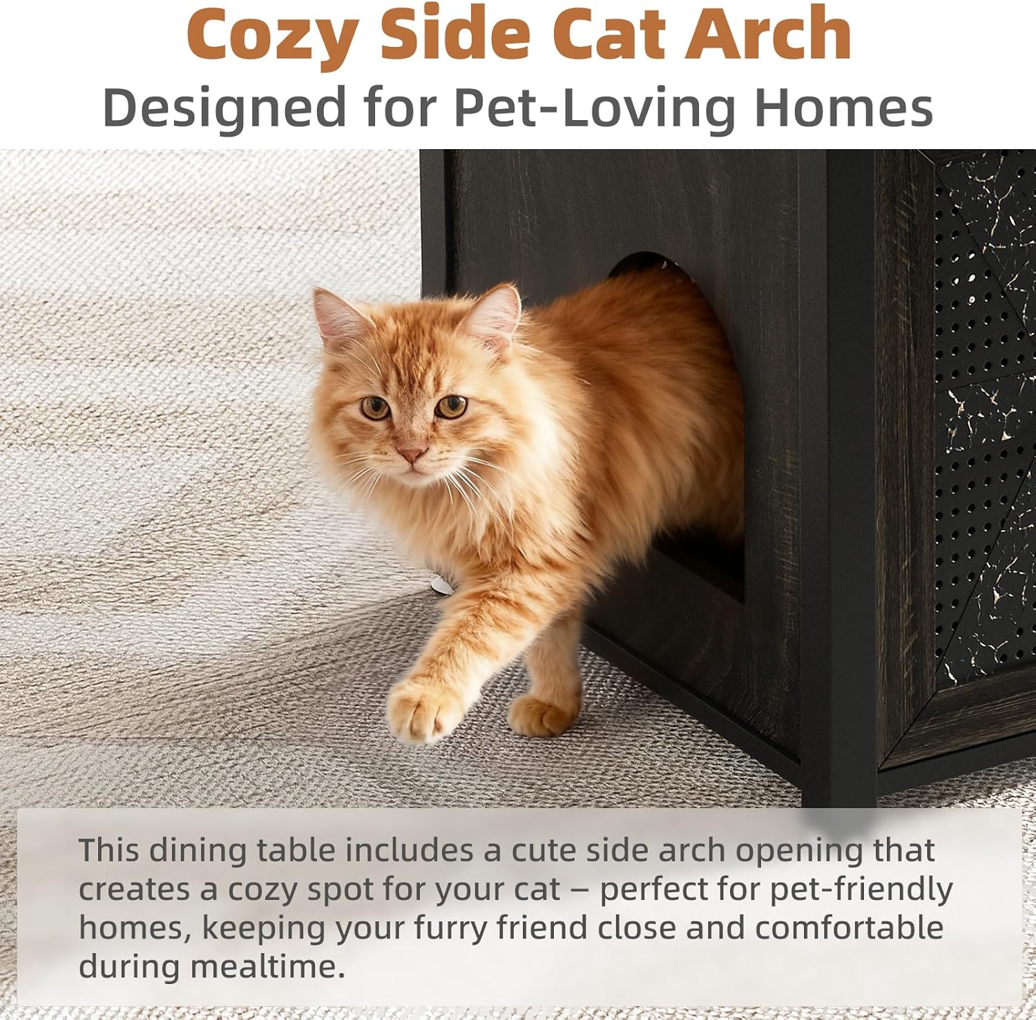 Dual-Layer Storage DesignDesigned with a unique two-tier storage structure for added functionality. The top shelf features open storage with baskets for tableware, books, or decor, while the bottom double-door cabinet offers hidden storage for larger itemsor even serves as a cozy pet nook for your cat. Stylish, practical, and space-efficient.